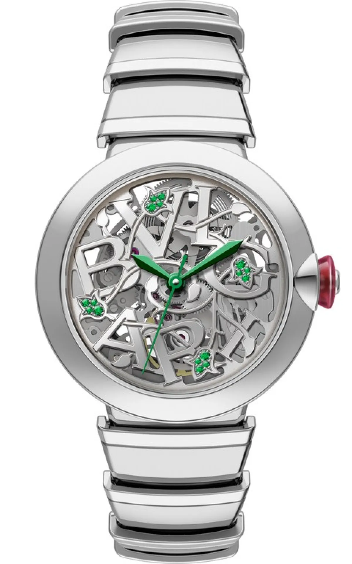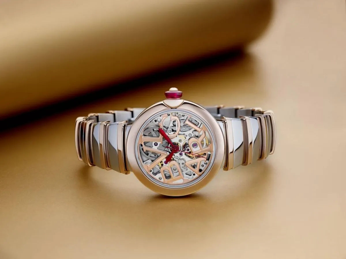 في إنجاز ميكانيكي جديد بالغ التعقيد والتطور، كشفت علامة بولغري Bvlgari عن ساعة لوتشيا سكيلتون للنساء اللواتي يقدرّن دقة وتعقيد "الساعات الراقية" حق قدرها. وهذه الساعة ليست مجرد تحفة ميكانيكية تتيح للأنثى التعبير عن افتتانها وشغفها بقلبها النابض، بل هي أول نموذج من ساعات لوتشيا سكيلتون في التاريخ يلتقط حروف شعار صانع الساعات الشهير ليجعل منها جزءاً لا يتجزأ من تصميم الساعة.