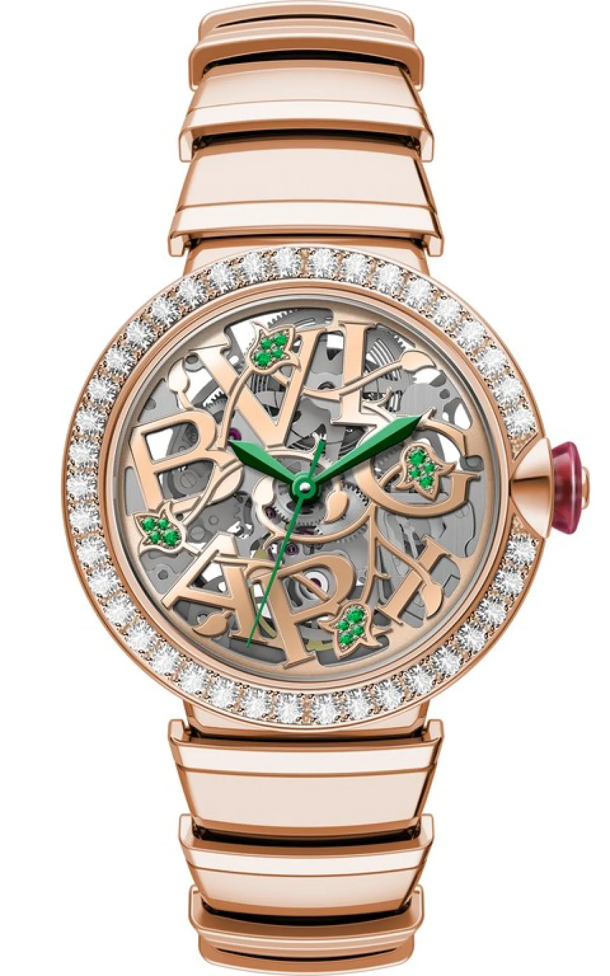 وفي ما يتعلق بإصدارات بولغري Bvlgari  الثلاثة الحصرية لمنطقة الشرق الأوسط فهي تجمع بين اللمسة الشرقية الرصينة وبين الجرأة في آن واحد. وتتميّز هذه الساعات الثلاثة بقطر 33ملم وهي مصنوعة إما من الفولاذ أو الذهب الوردي مع الماس أو الذهب الوردي من دون الماس. أما العقارب فمطلية باللون الأخضر مع ميناء مزخرف بزهرة شرقية من الزمرد والماس أو بدونه.