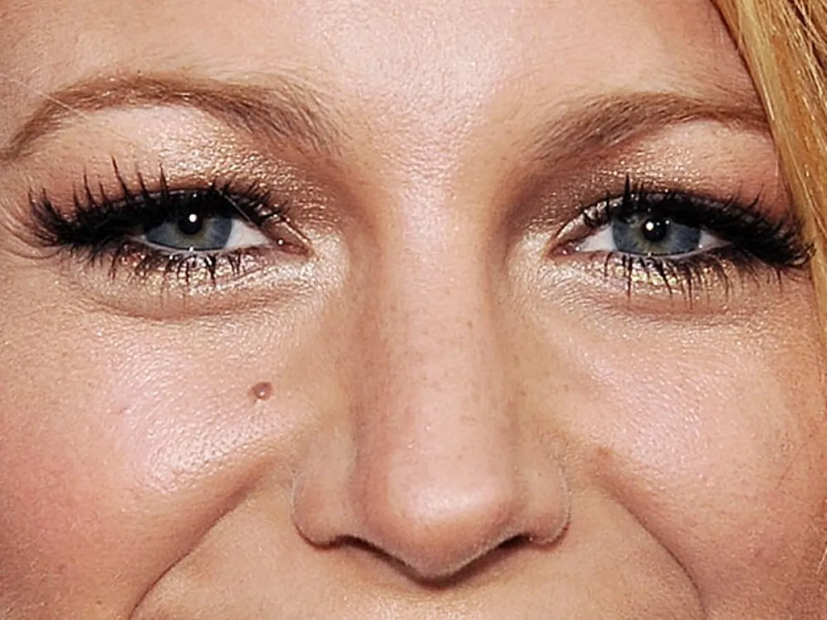 تفضل كيت هدسون الألوان اللامعة على الجفن العلوي، من دون أن تلطخ الجفن المتحرك بظل الجفون غامق اللون، وتعتمد خط أيلاينر رفيعا على عينيها، مع رموش متوسطة الطول، حتى تبرز لون عينيها.