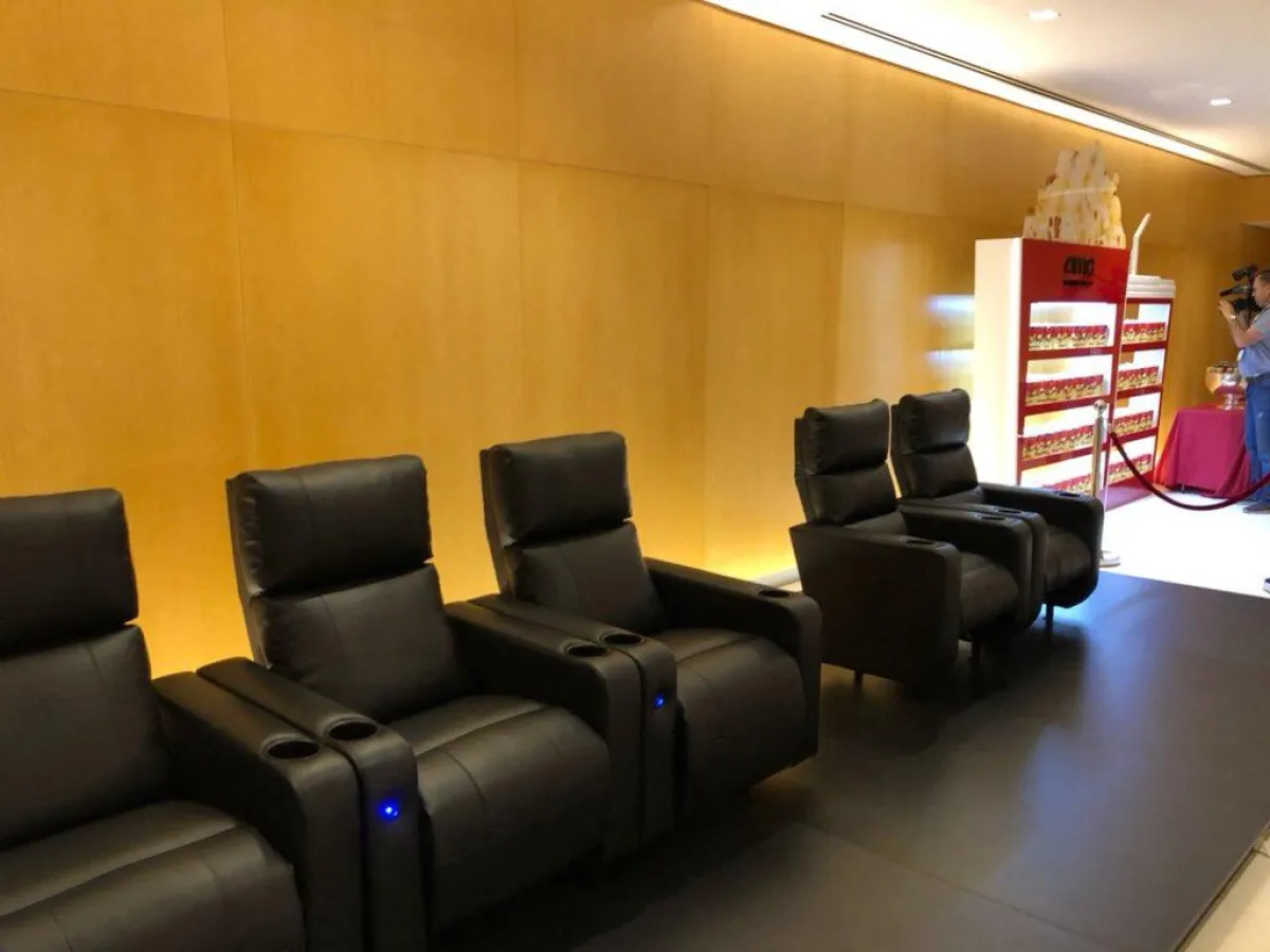 كما كشف حساب "مشاريع السعودية" عن نوعية الكراسي الخاصة بالقاعات مغرداً: "هكذا ستكون المقاعد في صالة السينما في مركز الملك عبدالله المالي بالرياض عوضاً عن المقاعد الحالية المؤقتة، وتتميز بنوعيتها الفاخرة وتعدد الوضعيات فيها".