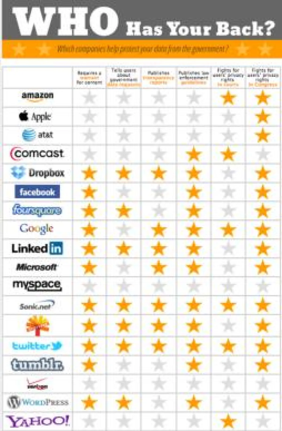 تنفس مستخدمو شبكات الإنترنت الصعداء عندما أعلن مجلس الشيوخ الأمريكي الأسبوع الماضي رفضه تمرير قانون تبادل المعلومات والمخابرات السايبرية وحمايتها والمعروف باسم CISPA. حيث تسعى العديد من الشركات التقنية الضخمة منذ عدة سنوات لتشريع ماترى انه حق لها في مشاركة معلومات المستخدمين مع بعضهم البعض ومع الحكومات مما يعرض خصوصية وسلامة المستخدمين للخطر. و نتيجة للوعي بأهمية حماية معلومات المستخدمين فقد قامت مؤسسة الحدود الإلكترونية Electronic Frontier Foundation في تقريرها السنوي بإعداد لائحة بأهم مقدمي خدمة الإنترنت والبريد الإلكتروني والتخزين السحابي لمعرفة سياسة هذه الشركات في حال طالبتها الحكومات بالإفصاح عن البيانات الخاصة بالمستخدمين.
