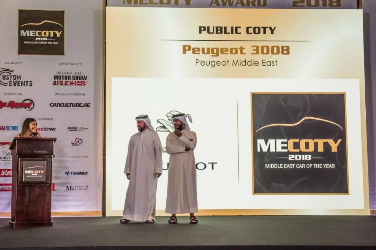 نالت "بيجو 3008" الجديدة لقب "اختيار الجمهور لـ سيارة العام 2018" خلال حفلة جوائز سيارة العام في الشرق الأوسط (MECOTY)للعام 2018، التي أقيمت أخيرًا في أبو ظبي. ويضاف هذا الفوز بهذ اللقب المرموق، إلى لائحة تضم 40 جائزة حصدتها بيجو 3008 الجديدة عالميًّا لغاية الآن. وقد حصد صانع السيارات الفرنسي هذا اللقب، عبر تصويت الجمهور من خلال شبكة الإنترنت بمجموع 75,967 صوتًا.