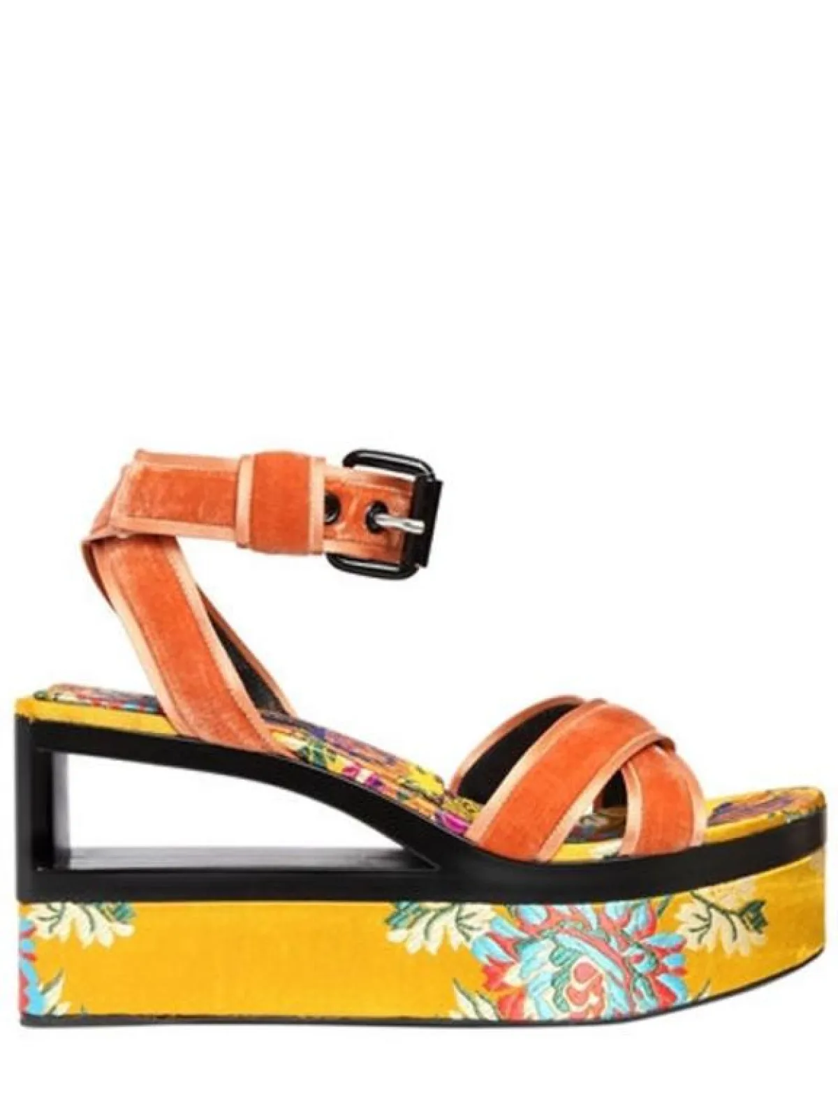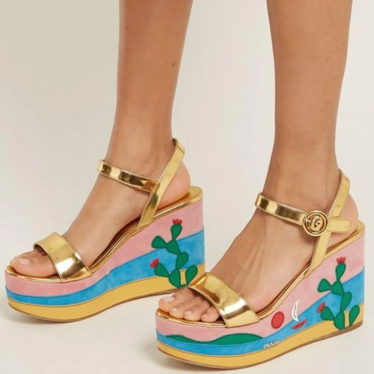 الحذاء المجنّح wedges المصنوع من اللّحاء، يجلس على رأس القائمة، بألوانه المختلفة والمميزة واللامعة التي تغازل أشعة الشمس المشرقة، بالإضافة إلى ألوان الورود والأشجار الملونة.