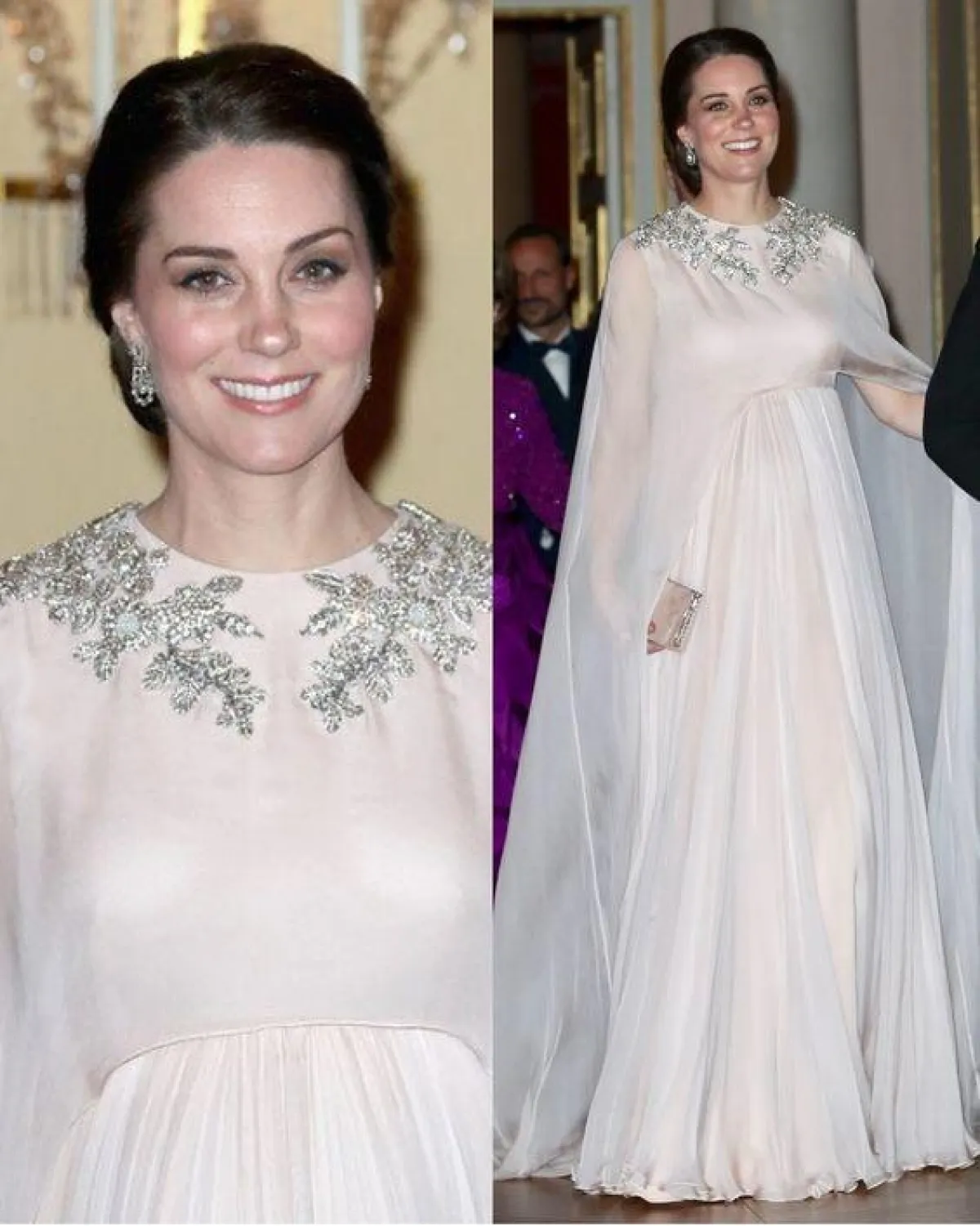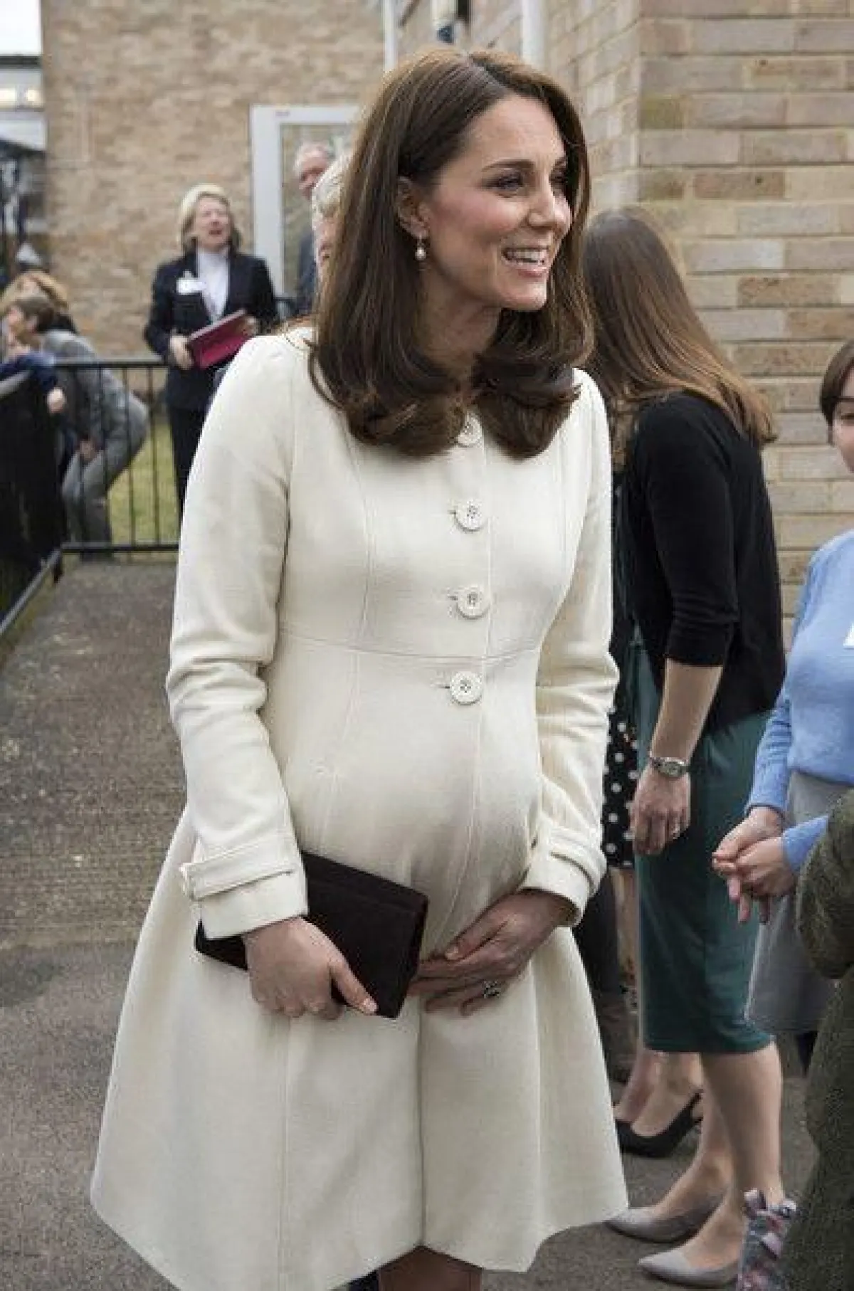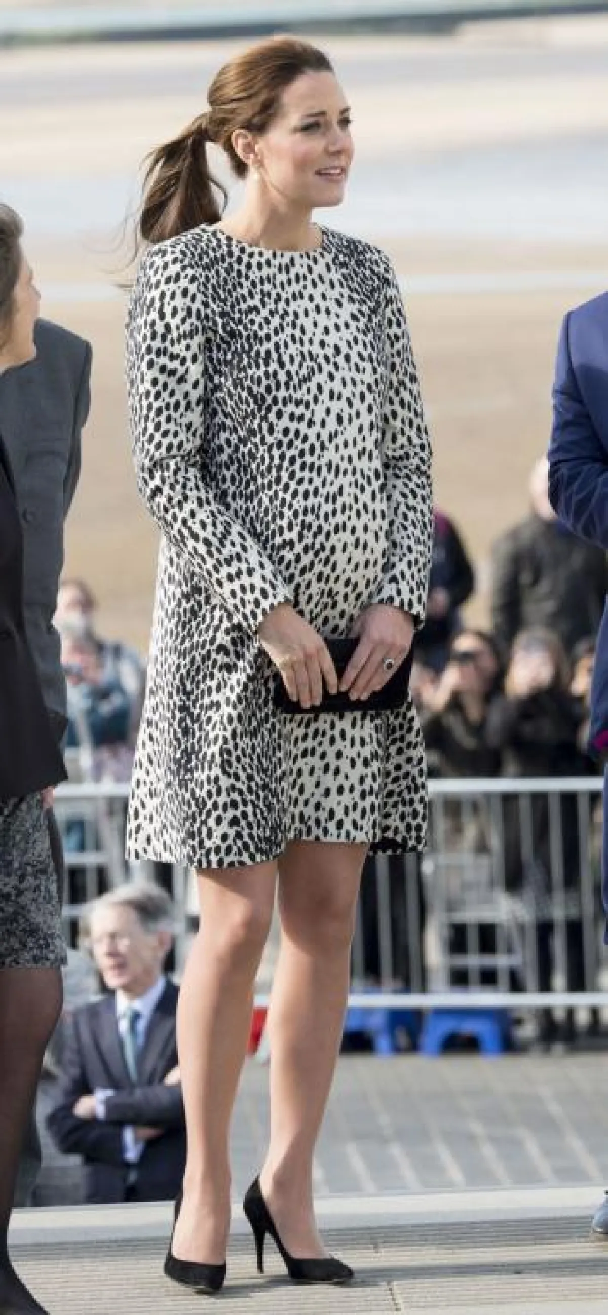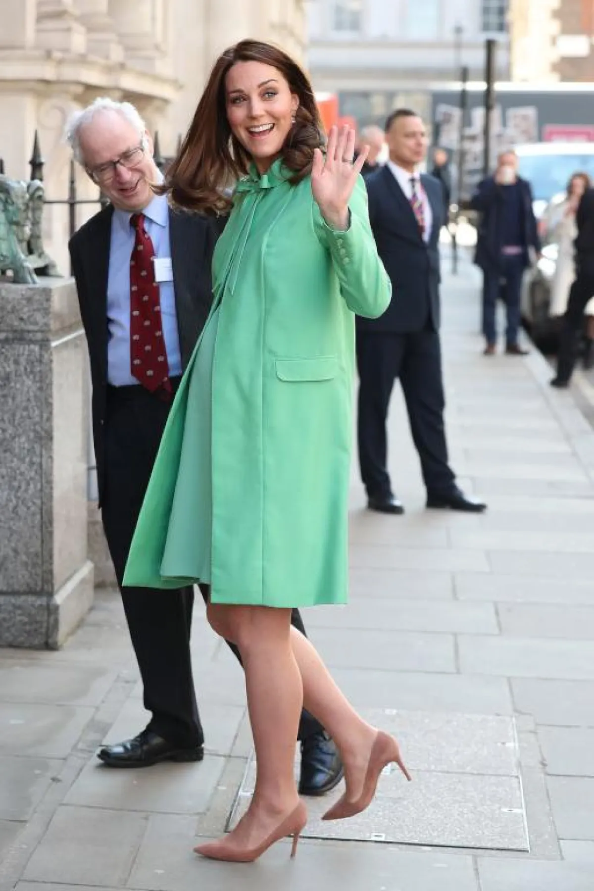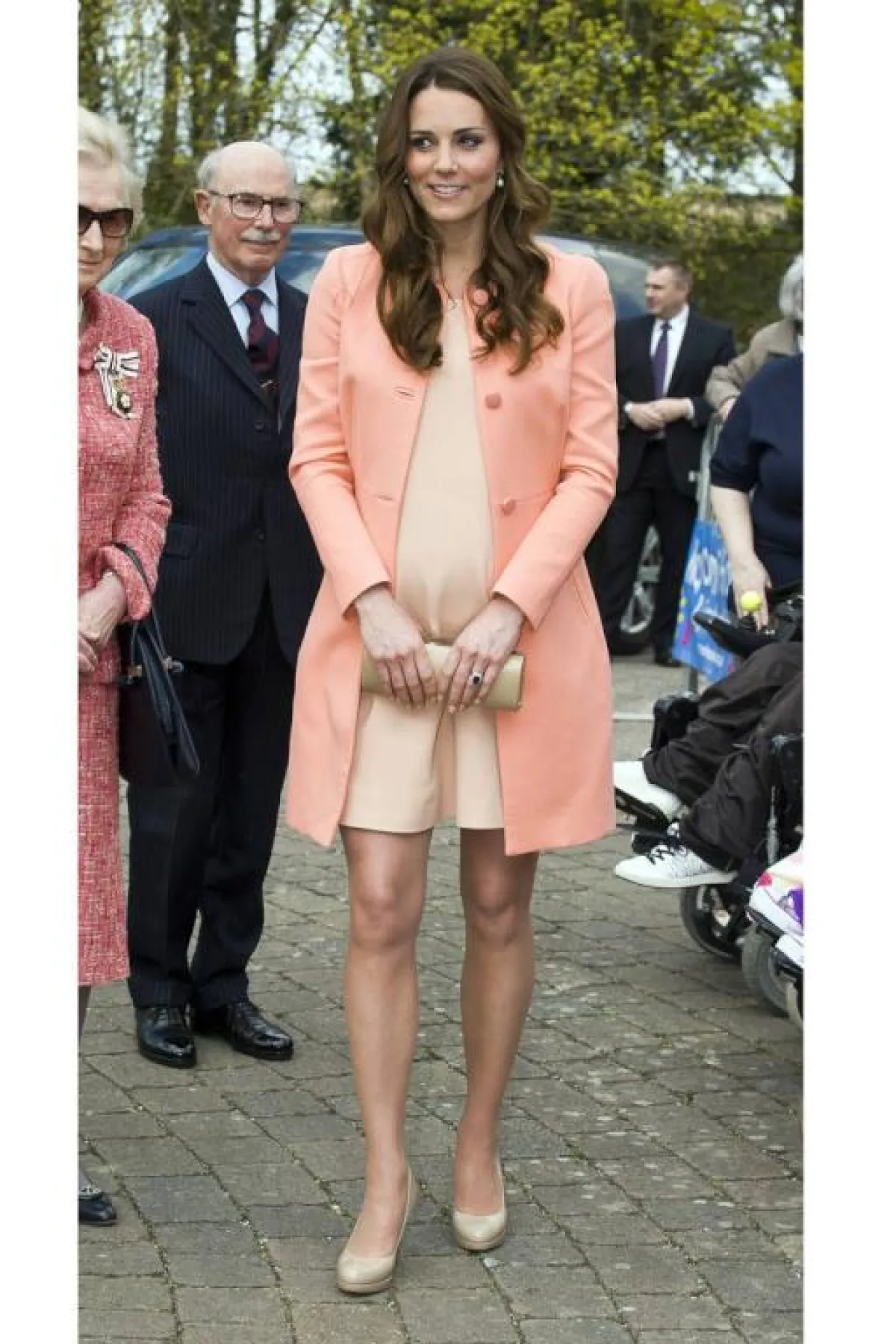 في بداية الحمل نلاحظ أنّ دوقة كامبريدج تميل إلى ارتداء فساتين ذات خصر عالٍ ضيّق قليلًا، لتُبرز جمالها، وتوضح مدى فخرها بحملها كأيّ أمّ عادية.
