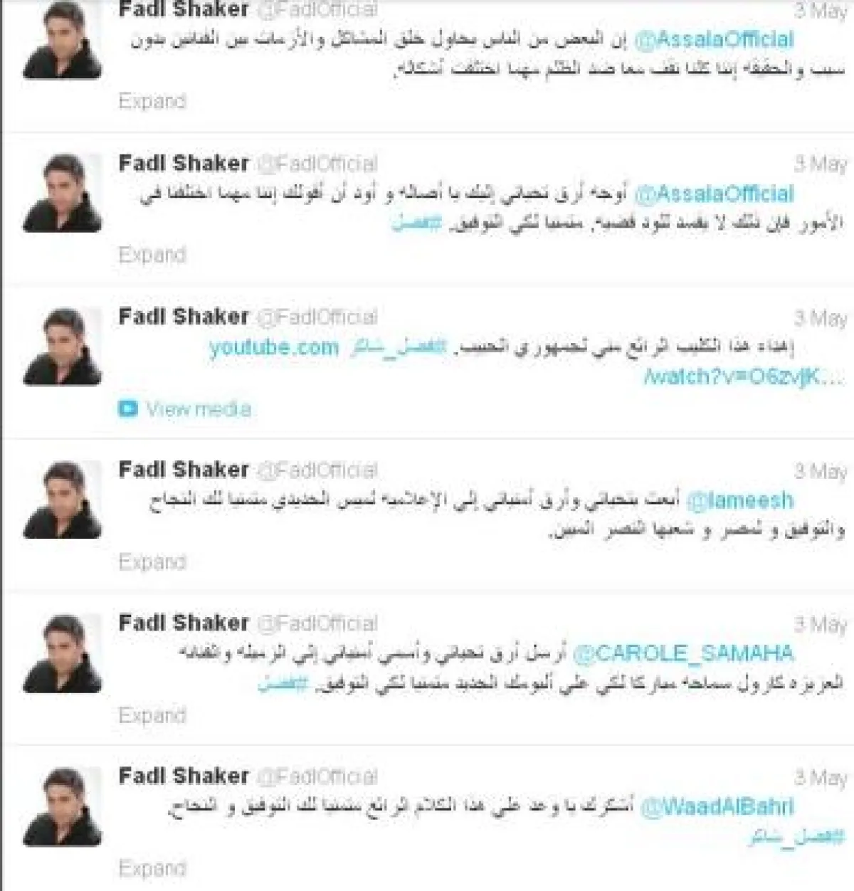 وكان صاحب الحساب الجديد قد أرسل بإسم فضل تغريدات إلى أكثر من نجمة، إلا أن أي واحدة منهن لم تقع في الفخ، وتجاهلت تغريدة النجم المزعوم الذي كتبت لزميلته أحلام "أرسل أرق تحياتي وأسمى أمنياتي إلى الأخت الكريمة والصديقة العزيزة الفنانة أحلام، متمنياً لك التوفيق و دوام الصحة".