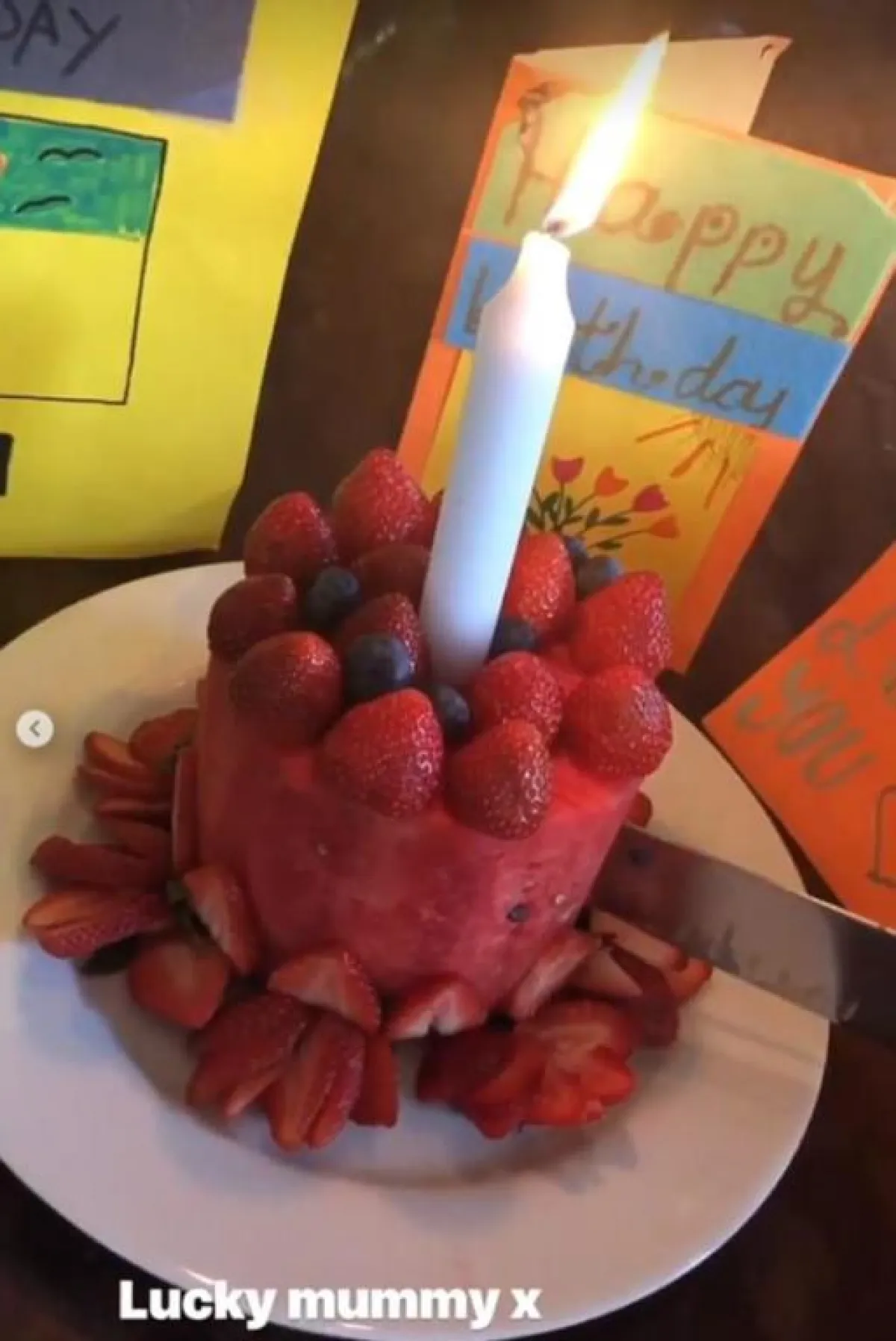 ويُظهر الفيديو النجمة وهي تطفىء شمعة ذكرى ميلادها الـ44، وقالب حلوى صغيرًا مكوّنًا من البطيخ والفراولة والعنب.