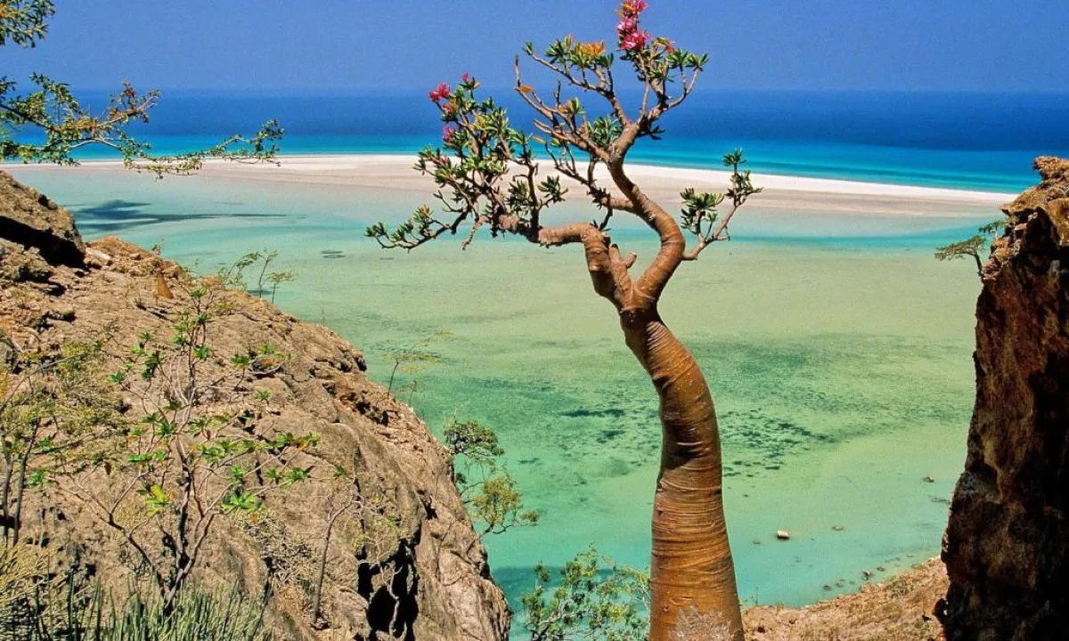 تقع جزيرة سقطرى في بحر العرب، بعيدًا عن أي منطقة بريّة، وقد طورت أنواعًا لم يتم العثور عليها في أي مكان آخر ، مثل شجرة دم التنين التي تم إمساكها باللون الأحمر. في الجزيرة لا توجد الفناق ومراكز الإقامة الفخمة، ولكن يحلو التخييم على الشواطئ، حيث تنتشر العديد من المواقعو التي تسمح للسائحين بالشواء على الشاطئ، مع مناظر جبلية في الخلفية.