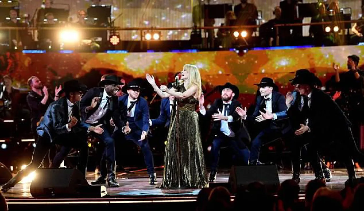 وبدأ المغني البريطاني سير توم جونز Tom Jones الحفل بعرض رائع رافقه نقر على الطبل يسمى "دهوول"، وهو نوع من الموسيقى الهندية.