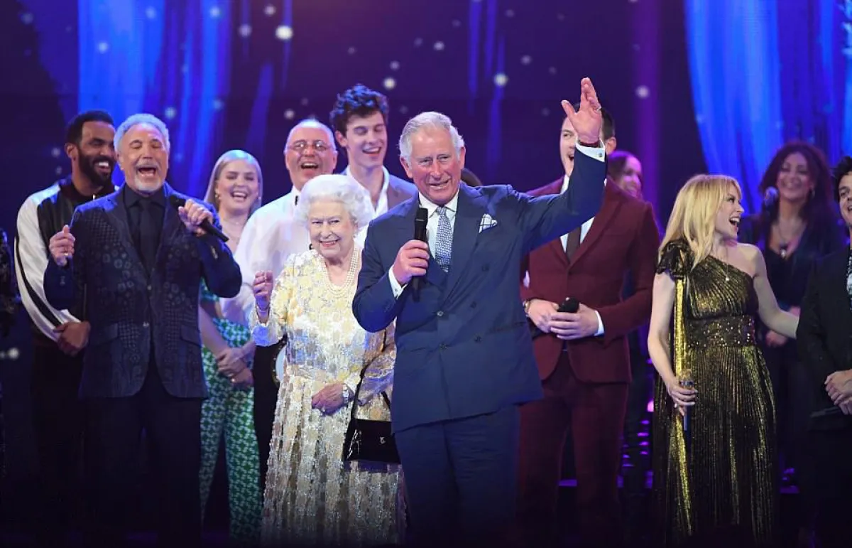 وقبل نهاية الحفل، صعد ولي العهد الأمير تشارلز Charles على المسرح وقاد الجماهير بهتافات "هيب هيب هوري" لتهنئة والدته بذكرى ميلادها.