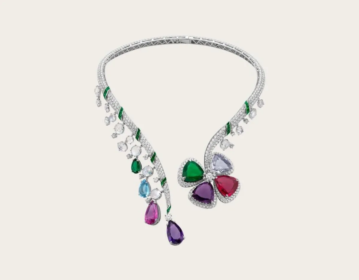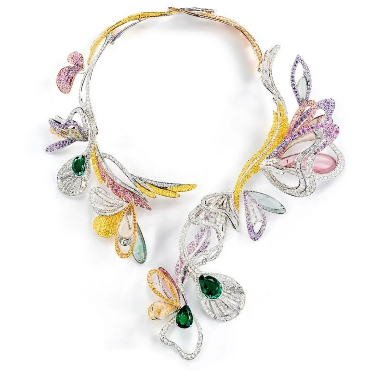 كذلك لفتتنا الأزهار المتفتّحة على المجوهرات كالعقد الذي قدّمته دار بوشرون Boucheron في مجموعتها بوكيه ديل Bouquet d'Ailes والذي تلوّن بالأحجار الكريمة الفاخرة.