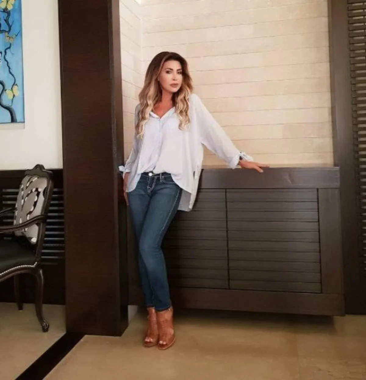 - القميص أو البلوزة البيضاء قطعة أساسية في خزانة النحيفات، لاسيّما الموديلات غير المحدّدة للقوام، حيث ستمنحكِ مظهرًا ممتلئًا، نسّقيها مع جينز Low Waist على غرار النجمة الذهبية.