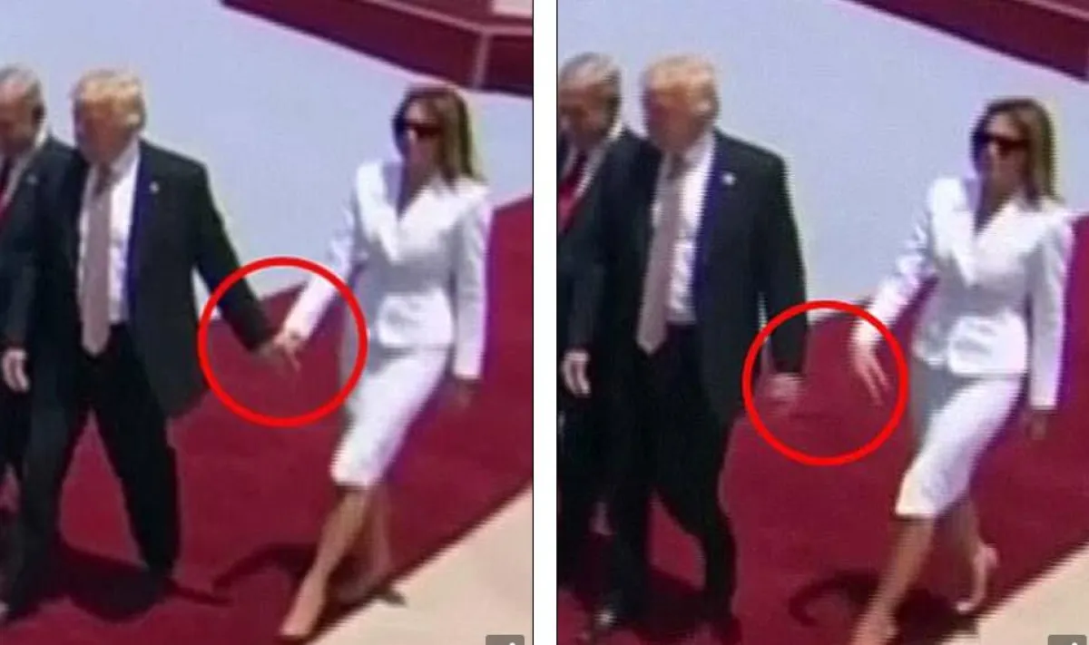 وكانت ميلانيا قد رفضت في المرة الأولى محاولة ترامب إمساك يدها، وهما على السجادة الحمراء بعيد وصولهما إلى فلسطين المحتلة، ولكنّها أبعدت يده بشكل أثار التساؤلات حول العلاقة بينهما.