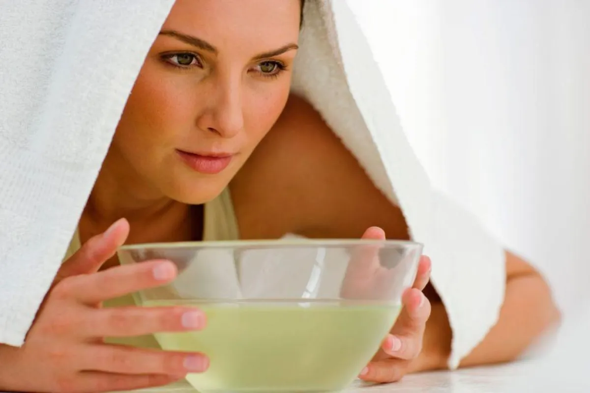 عرضي وجهك للبخار الخارج من الماء الساخن مع وضع منشفة.