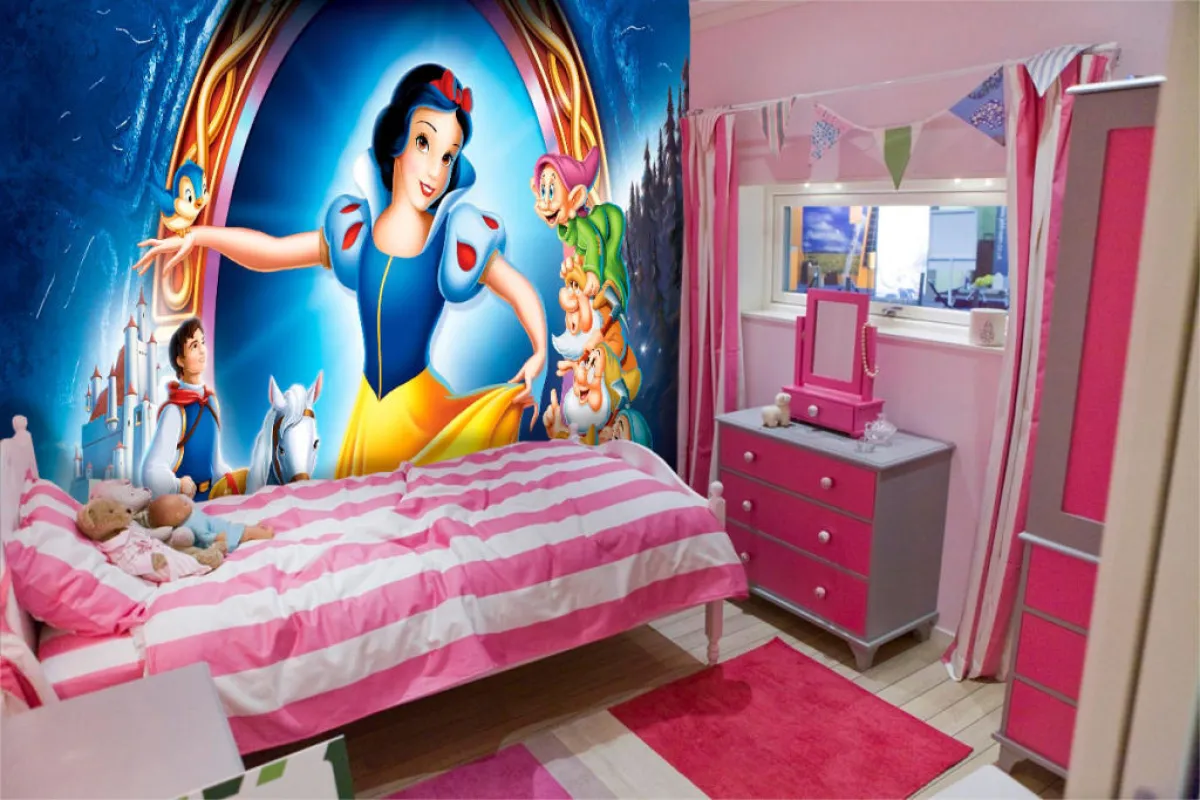 تتناسب هذه الغرفة مع طفلتك الصغيرة، بأحجام قطعها، ولا يطلب أن تكون فخمة؛ لأنها ستنقل صغيرتك إلى عالم الغابة والأقزام السبعة.