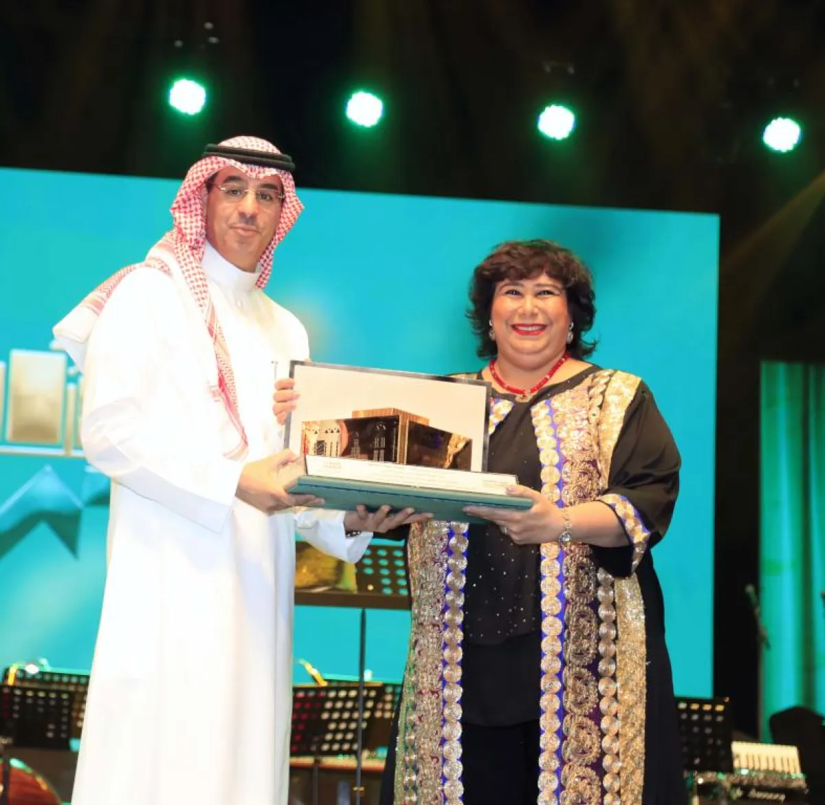 وفي بداية الحفل ألقى وزير الثقافة والإعلام الدكتور عواد بن صالح العواد كلمة رحب في بدايتها بوزيرة الثقافة المصرية والوفد المشارك في بلدهم الثاني المملكة العربية السعودية، مقدراً لهم حضورهم ومشاركتهم الفنية، واستعرض الجوانب الفنية والثقافية التي تنهض بها المملكة في ظل الدعم والرعاية من خادم الحرمين الشريفين وولي العهد حفظهما الله لتطوير قطاع الثقافة والارتقاء بالفنون وتقديم الجوانب المضيئة للموروث الثقافي لبلادنا.