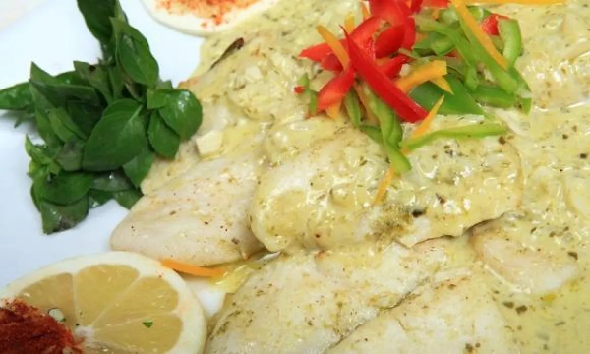5- يوضع السمك في طبق، وتسكب الصلصة عليه. ويمكن تقديمه مع الأرز بالأعشاب أو "الباستا".