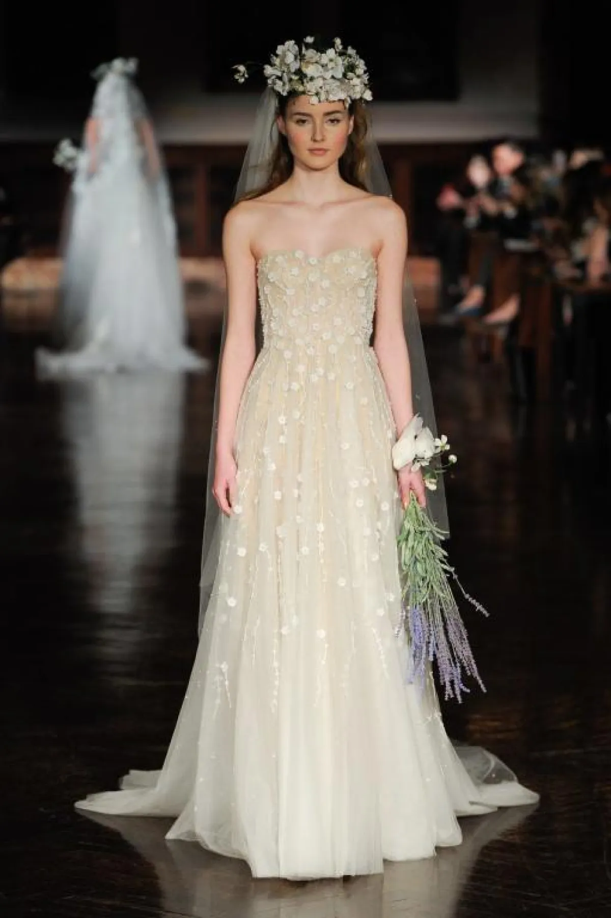 ولمزيد من الأنوثة في إطلالة العروس، قدمت بعض الماركات فساتين زفاف Strapless مزينة بالورود، مثل: فساتين كارولينا هيريرا Carolina Herrera، رومونا كيفيزا Romona Keveza، ريم عكرا Reem Acra، وFrancesca Miranda.