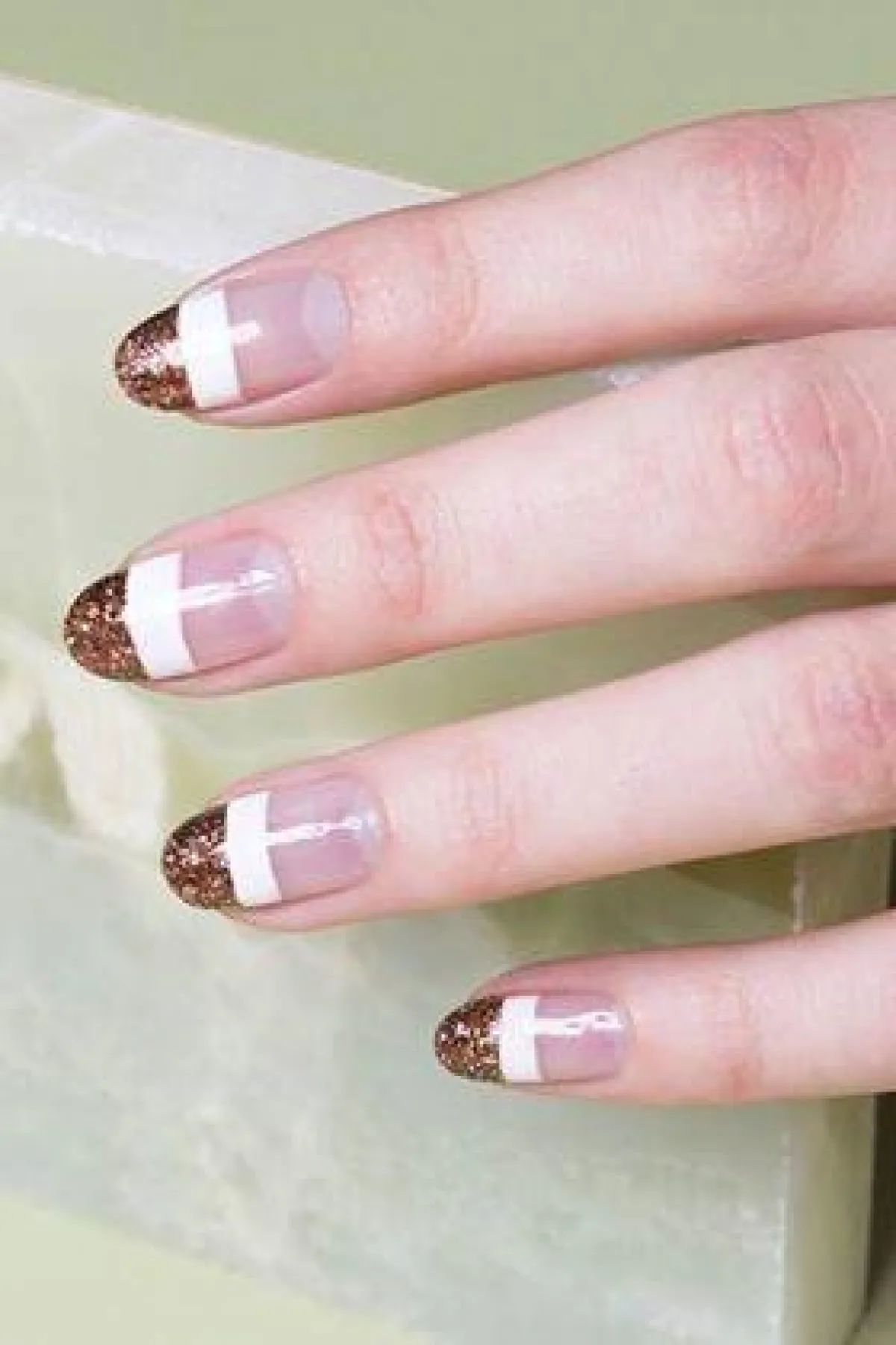 هذه الطريقة بسيطة لكنها أنيقة ولافتة في الوقت نفسه، وتعتمد على طلاء أطراف الأظافر بالمناكير اللامع البراق باللون الذي تختارينه وفقًا للون إطلالتك وثيابك، ثم استخدام اللون الأبيض على منتصف الظفر فقط، وترك المساحة الباقية منه بلونه الطبيعي الشفاف.