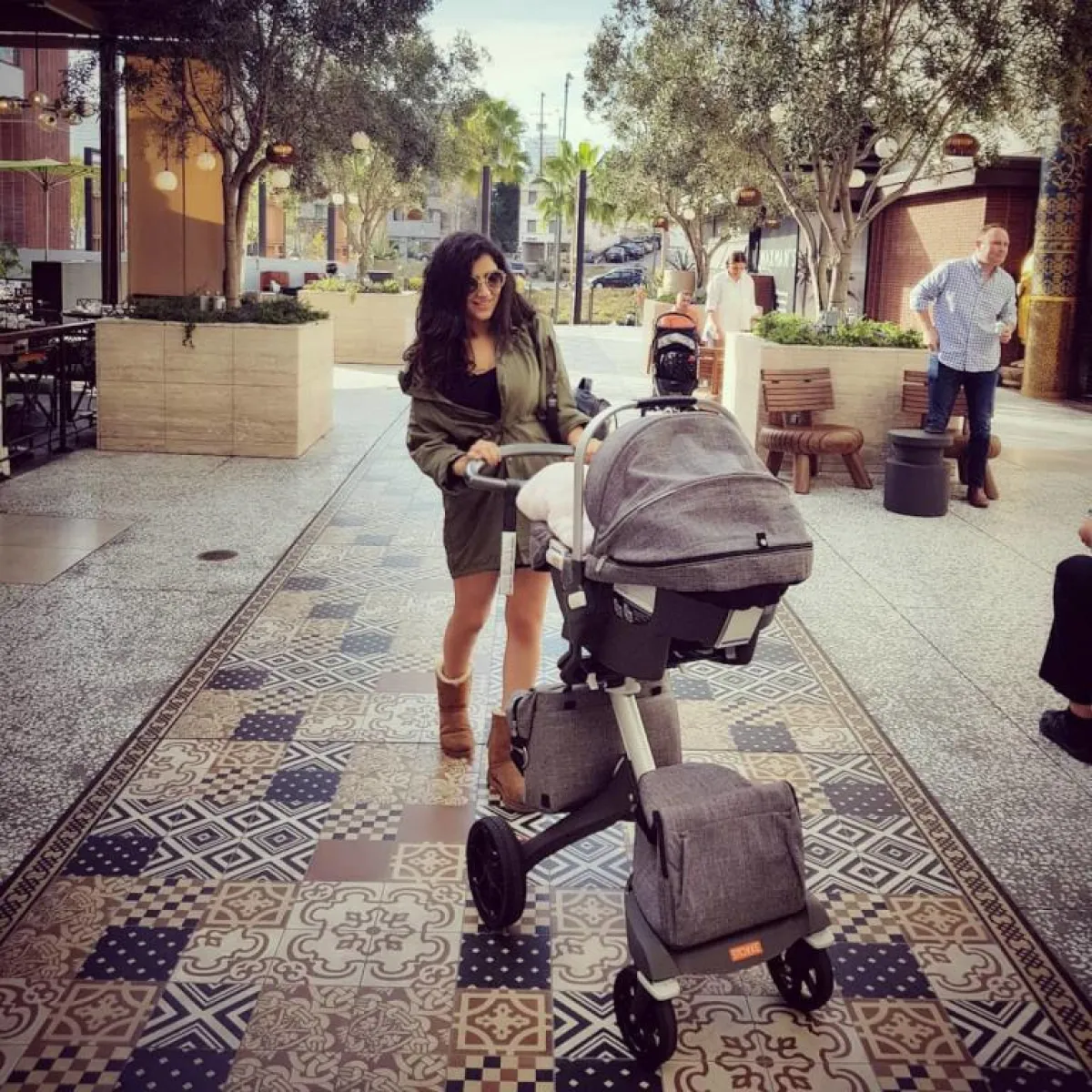 كشفت الفنانة مي عمر، عن أول اطلالة لها برفقة ابنتها سيلين، بعد الولادة بخمسة أيام فقط، حيث نشرت صورة لها وهي بكامل رشاقتها تسير في شوارع أمريكا، وتدفع بعربة أطفال تنام بداخلها المولودة الصغيرة، ووجهت لها رسالة ترحيب.
