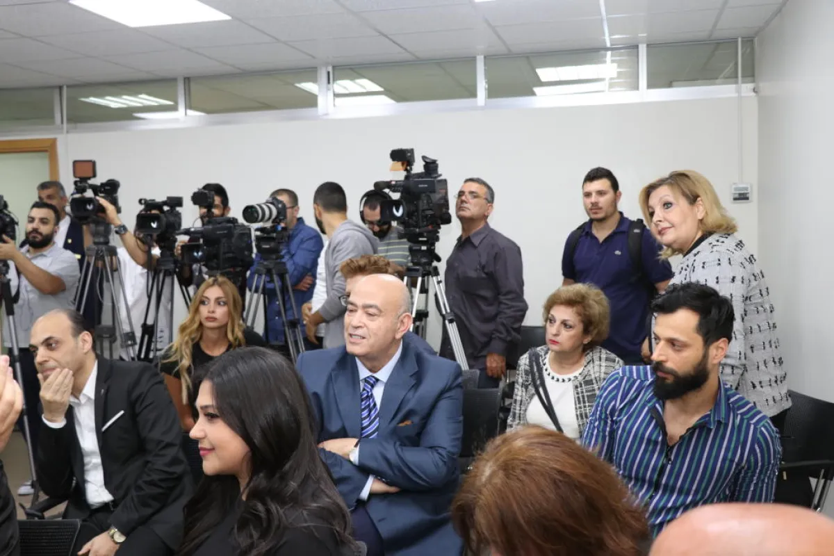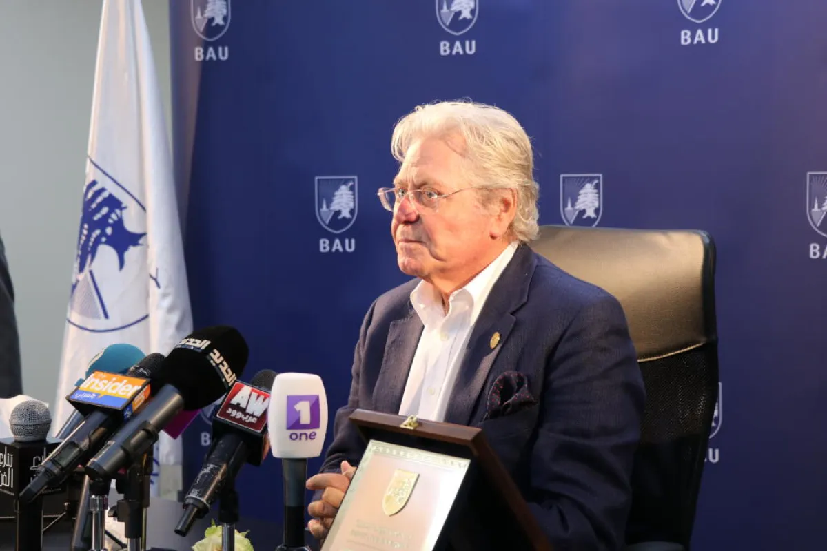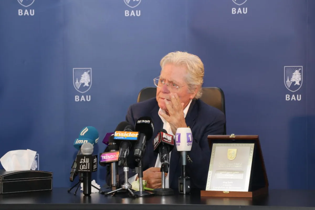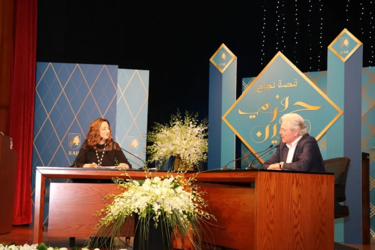 حسين فهمي الذي يملك في جعبته حوالى 189 عملًا سينمائيًّا، والعديد من الجوائز التي حصدها من مهرجانات عربية وعالمية، رفض في بداية حديثه أن يقال عنه إنه "من عائلة بورجوازية، وفضّل أن يتم وصف حياته بالأرستقراطية، مقدّمًا شكره لشعب لبنان الذي يسعد دائمًا بوجوده في هذا البلد، كما عبّر عن سعادته بوجوده في هذا الصرح الأكاديمي، متمنيًّا للجامعة المزيد من الازدهار.