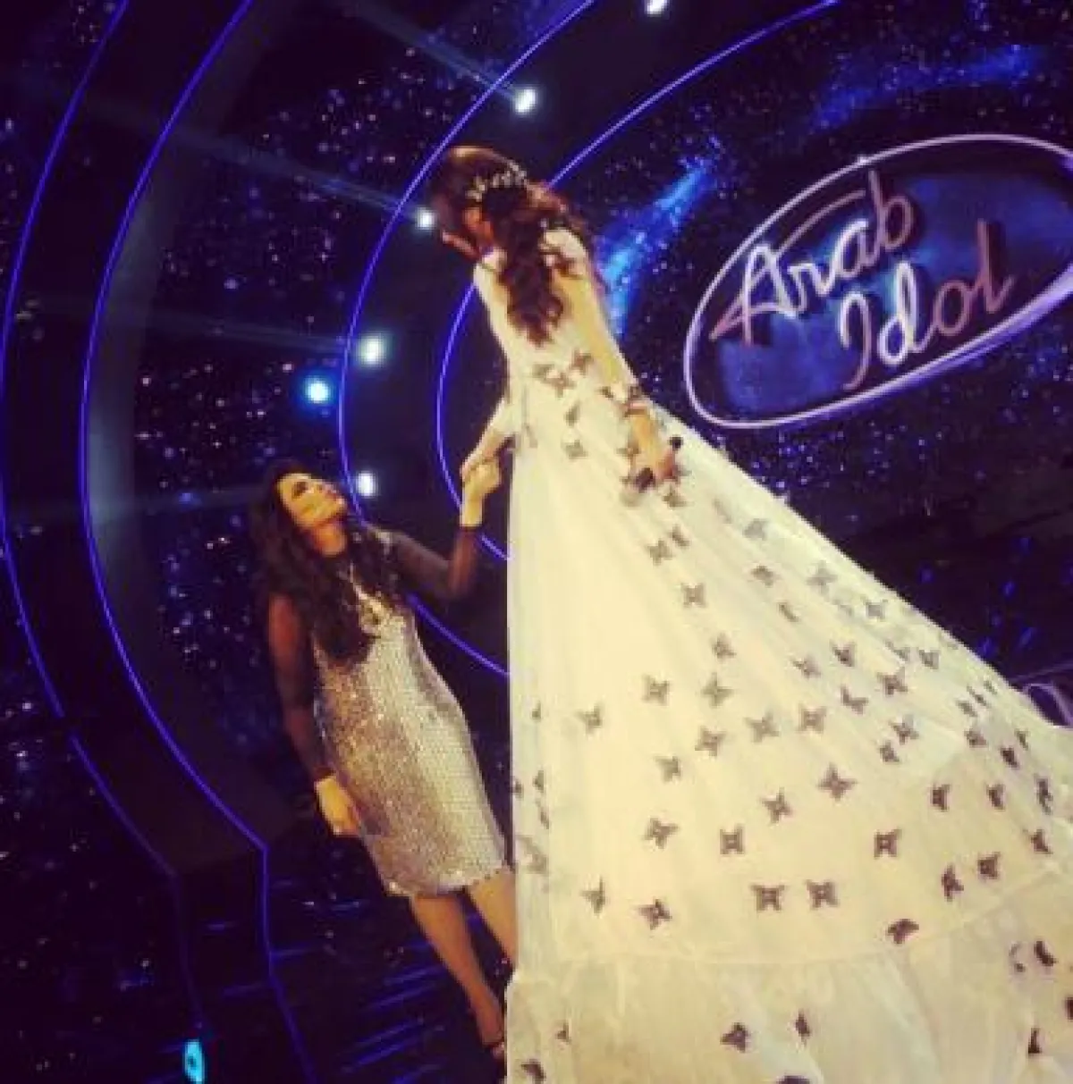 وبعيداً عن كاميرا البرنامج، قامت أحلام بالتقاط صورة مع المشتركة يسرا بكاميرتها، فوجّه لها مدير المسرح ملاحظة بضرورة الإسراع قبل البثّ المباشر، فأسكتته بإشارة من يدها، وكلمة "هش هش".