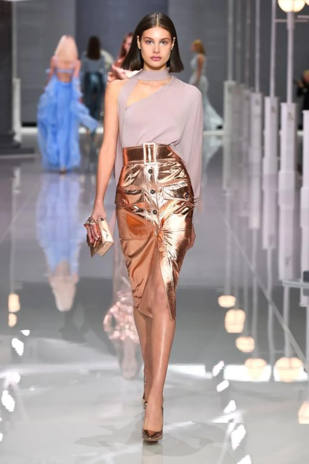 سيطرت الأقمشة المعدنية أو الميتاليك على منصات عروض موسم ربيع وصيف 2018 فشاهدناها على الفساتين والسراويل والتنانير والقمصان.. وغيرها.