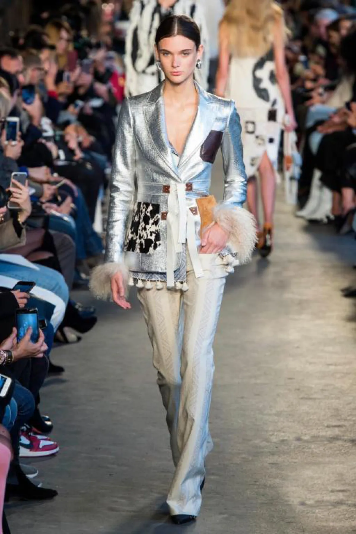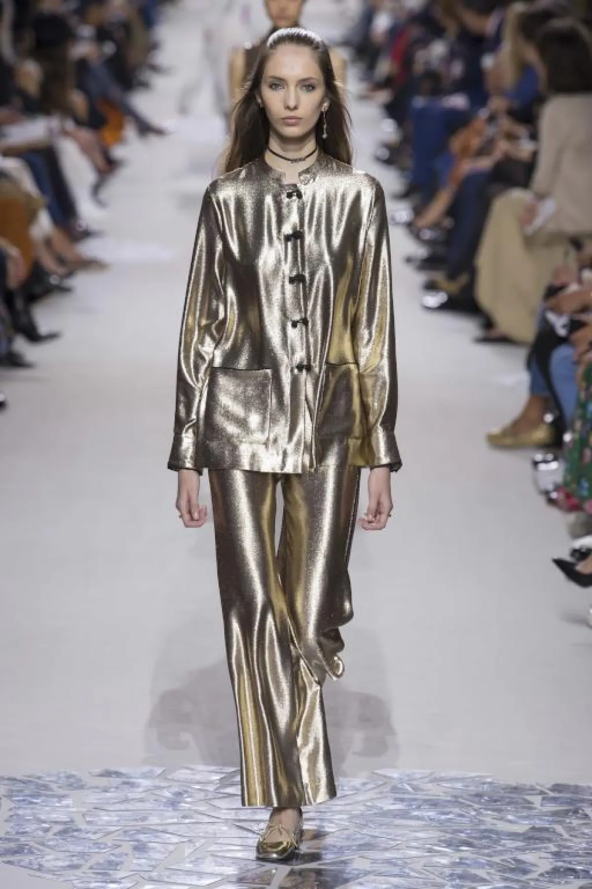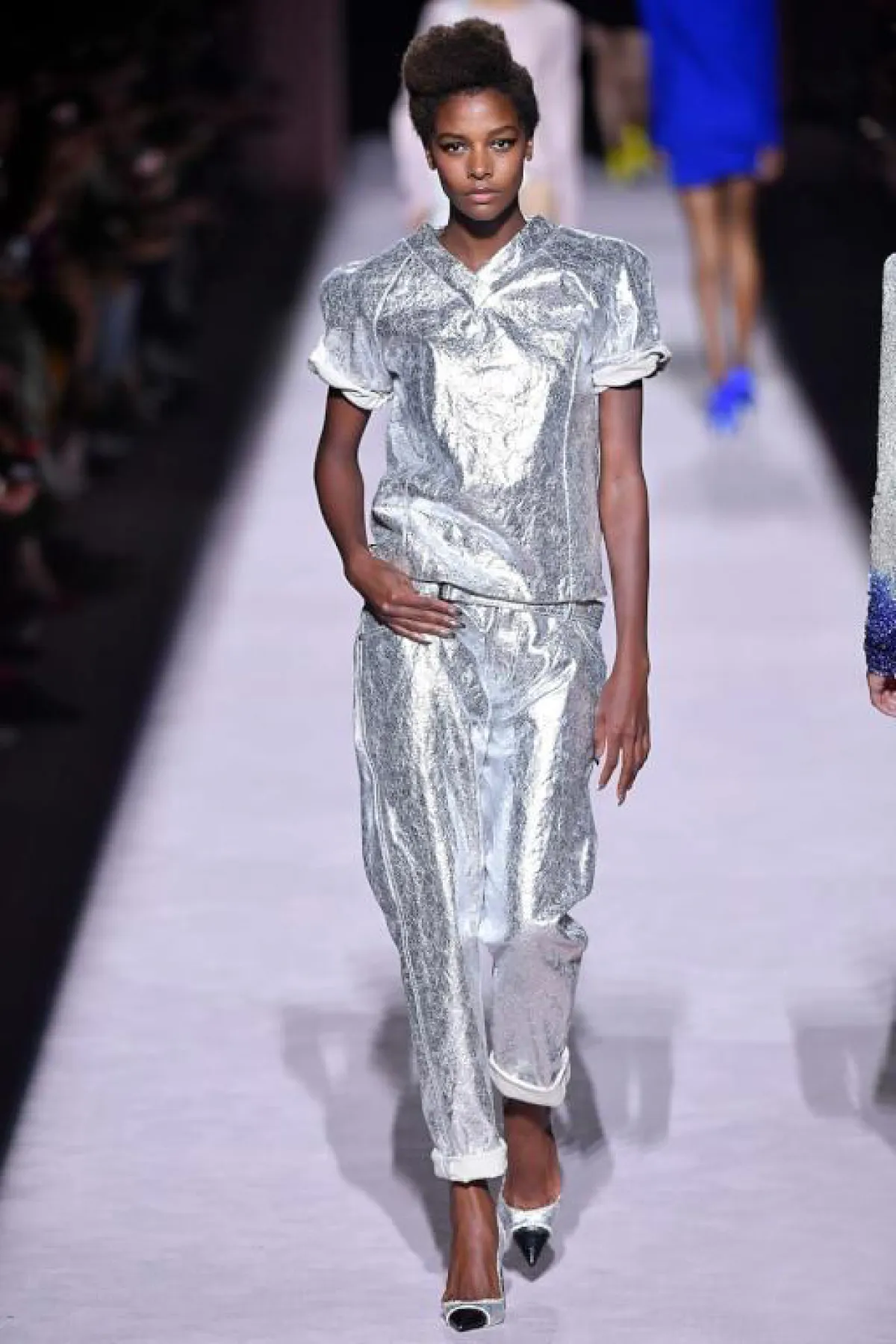 بعض الإطلالات كانت مصنوعة بالكامل من هذه الأقمشة، جمعت درجات مختلفة أو جاءت أحادية اللون. وصيحة الميتاليك لم تقتصر على اللونين الفضي والذهبي، إنما تنوّعت لتشمل لوحة ألوان غنيّة من الأحمر، والأزرق، والزهري والأخضر والبنفسجي...