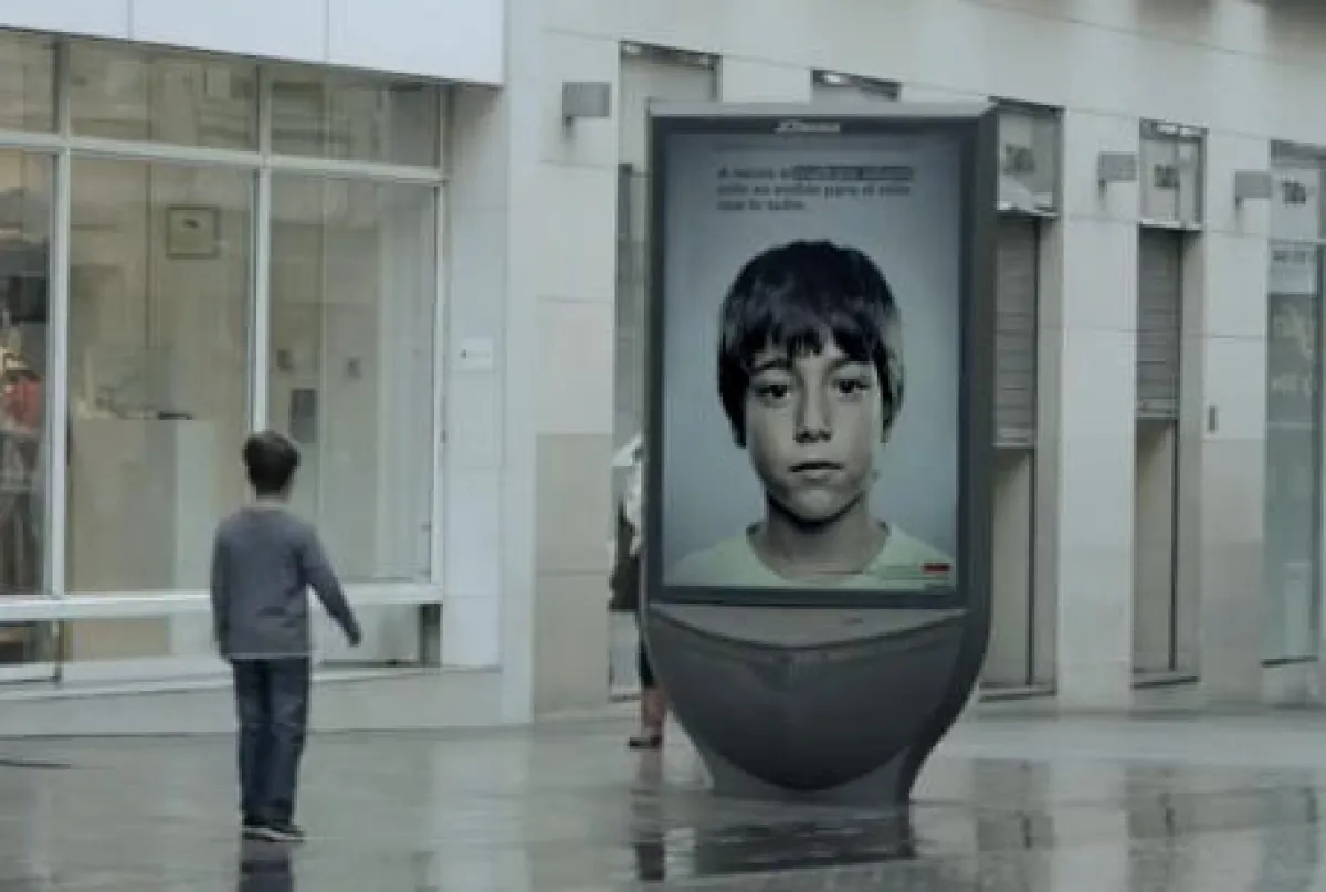 في محاولة لرفع مستوى الوعي حول إساءة معاملة الأطفال قامت منظمة إسبانية بابتكار لوحة إعلانات ذكية تحتوي على رسالة سرية لا يستطيع أن يراها غير الأطفال تحت سن 10 سنوات.