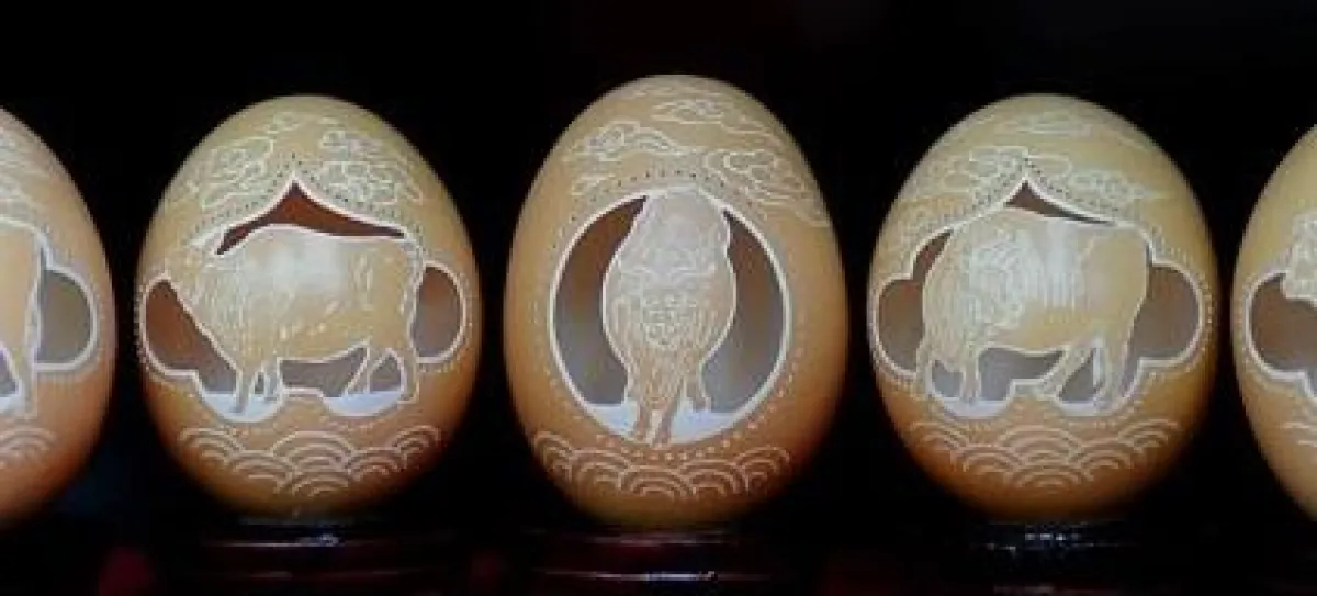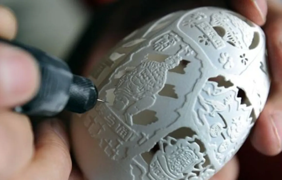 بدأ الأمر مع Wen الذي يعيش في مقاطعة شاكسي Shaanxi عندما كان يعمل في النحت على الأخشاب لكنه مع الوقت ترك الأخشاب إذ جذبته خامة قشر البيض كتحد مذهل للرسم الدقيق والنحت وكرّس كل وقته لهذا الفن الغريب/ الذي أصبح بارعًا فيه بعد 10 سنوات من الممارسة والخبرة.