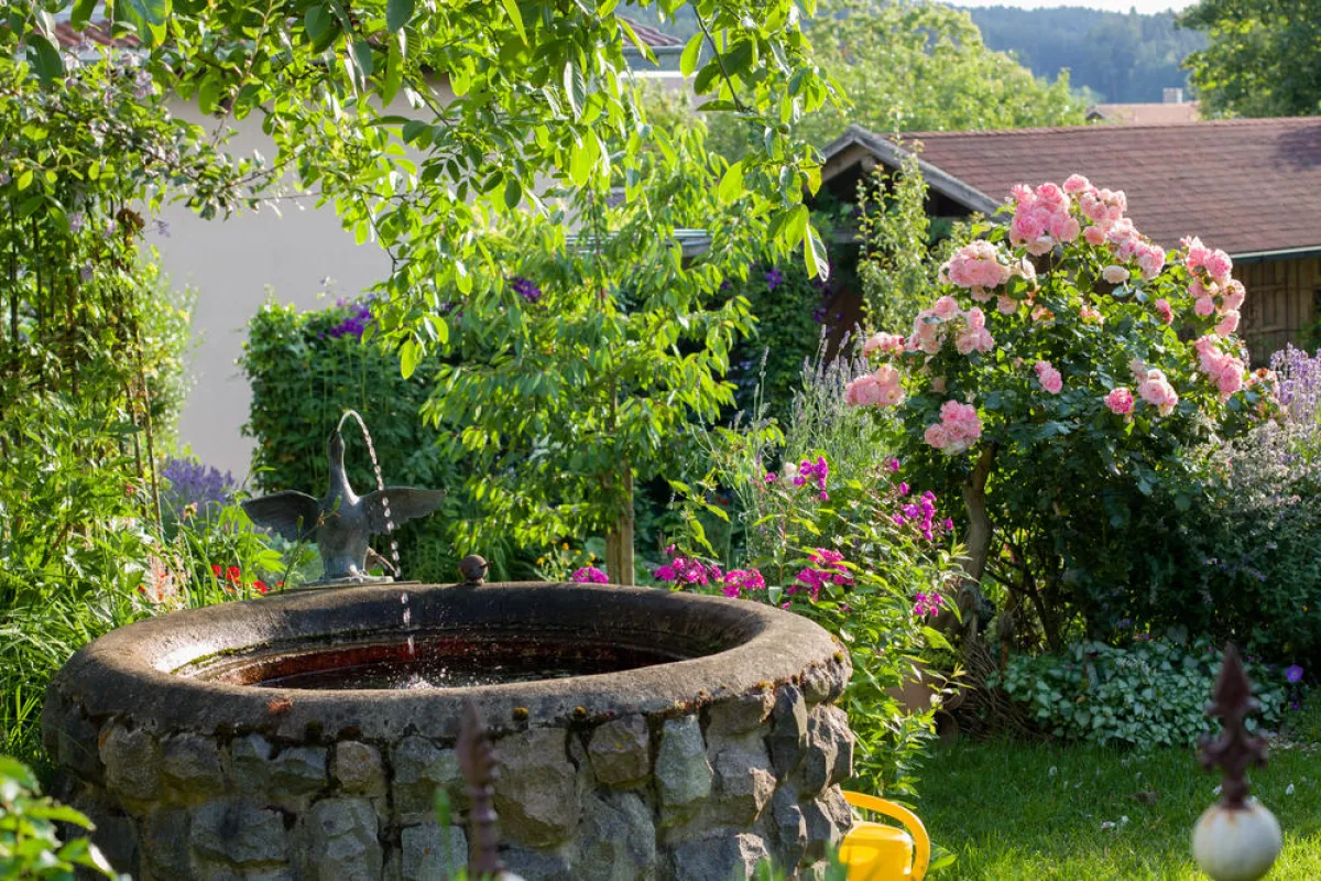 6. تُحقِّق نافورة الماء ضمن بركة التزيين طلَّة راقيةً للحديقة، خصوصًا في حال استخدام الأشكال الهندسيَّة المُحدَّدة والمواد المبسطة عند إعدادها، مع الحرص على جعل مصادر خروج الماء من النافورة مُتعدِّدة.