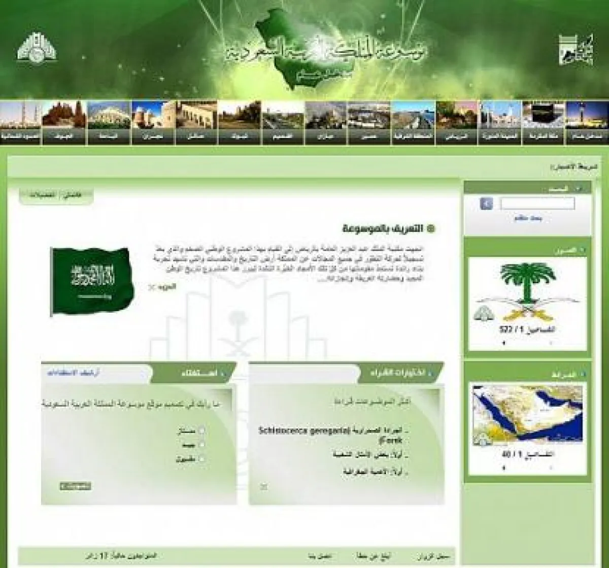 استطاعت بوابة موسوعة المملكة العربية السعودية على شبكة الإنترنت أن توفر أكثر من 10.000 صورة فوتوغرافية تم التقاطها خصيصًا لدعم محتويات الموسوعة من المعلومات والبيانات بواسطة نخبة مختارة من أفضل المصورين السعوديين، كما أنّ إدارة البوابة سمحت لزوار الموقع بتنزيل عدد كبير من الصور، بالإضافة إلى أكثر من 160 خريطة وعدد كبير من الرسوم البيانية والتوضيحية الموثقة والمعتمدة والتي تمثل مرجعًا للباحثين والدارسين في الشأن السعودي حول الخصائص الجغرافية والتطور التاريخي، والمواقع التاريخية والأثرية، وأنماط الحياة الاجتماعية، وبيان معدلات النمو في جميع حالات التنمية الاقتصادية، وتطور المرافق والخدمات التعليمية والصحية والاجتماعية والسياحية في جميع مناطق المملكة، وقد بين المدير التنفيذي لموسوعة المملكة العربية السعودية الدكتور فهد السلطان أنّ بوابة الموسوعة على شبكة المعلومات الدولية والتي تم تدشينها مؤخرًا حرصت على إتاحة كافة المعلومات والبيانات والصور والرسوم التوضيحية والخرائط التي تضمنتها مجلدات الموسوعة العشرين لزوار موقع البوابة بأفضل المعايير والمواصفات الفنية لتسهيل مهمة الباحثين والدارسين والإعلاميين وطلاب العلم للاستفادة من هذا المشروع الثقافي والعلمي الفريد، والحصول على كافة المعلومات الموثقة والمعتمدة عن جميع أوجه الحياة في المملكة قديمًا وحديثًا بكل سهولة ودون أي تكاليف مادية.