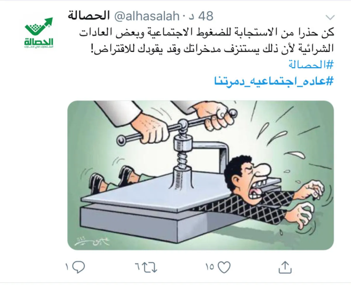 رفضا لبعض العادات الاجتماعية المتوارثة و التي قد تقف عائقا أمام الكثيرين في تحقيق مناسباتهم أو تؤثر على بعض تفاصيل الحياة وممارستها بشكل طبيعي، أطلق مغردون من السعودية هاشتاق عادة_اجتماعية_دمرتنا على تويتر وعبروا من خلاله رفضهم لعدد من العادات الاجتماعية واتقف الأغلبية على رفض العادات التالية: