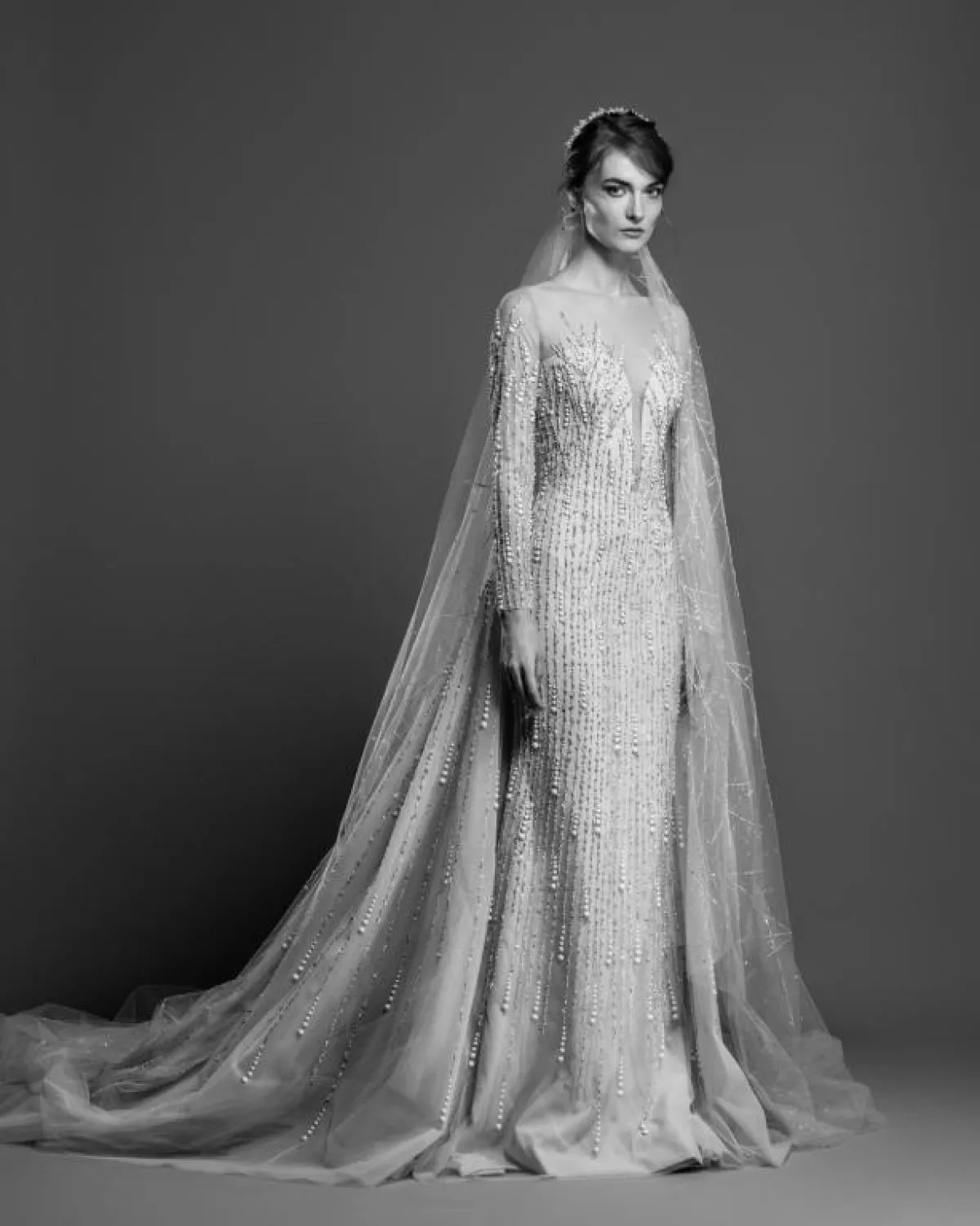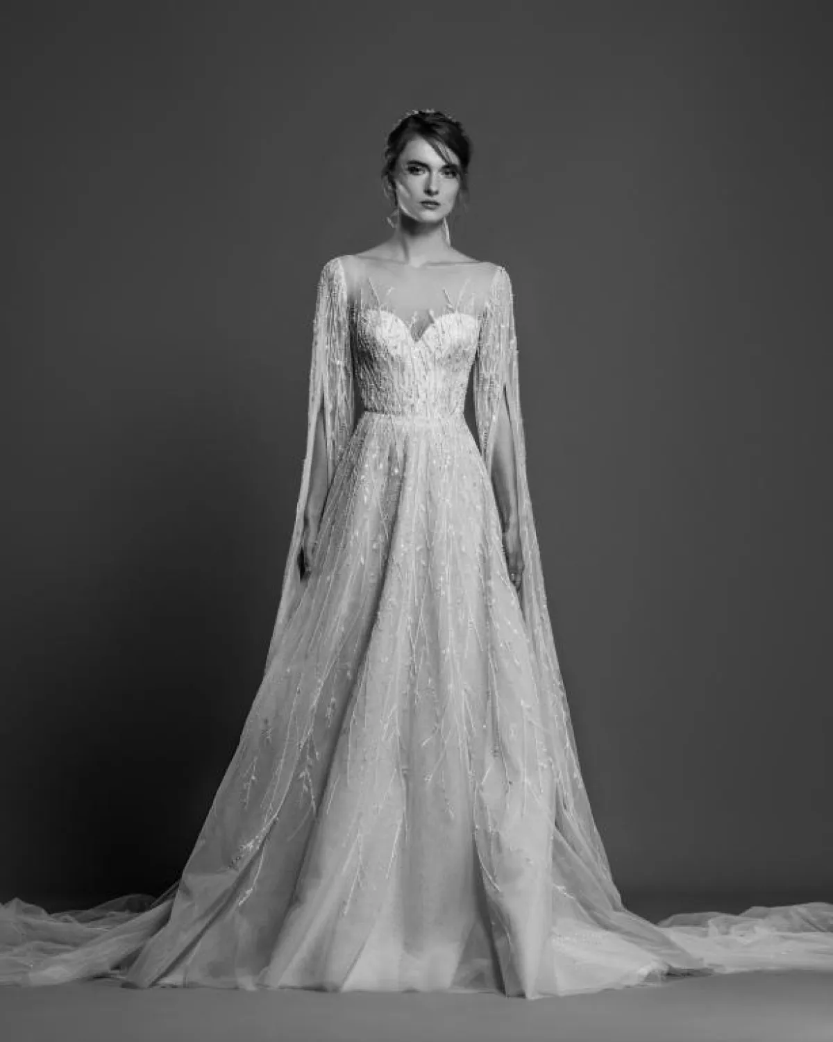 تميزت فساتين زفاف ايلي صعب برقيها ونعومتها في نفس الوقت، وتمنح العروس إطلالة أنثوية بفضل القصّة الضيقة حول الخصر والتي تبرز نحافته، مع تنورة Ball Gown وتطريزات ناعمة، واكتملت إطلالات العروس بالطرحة التول الطويلة التي تنسدل على الأرض.