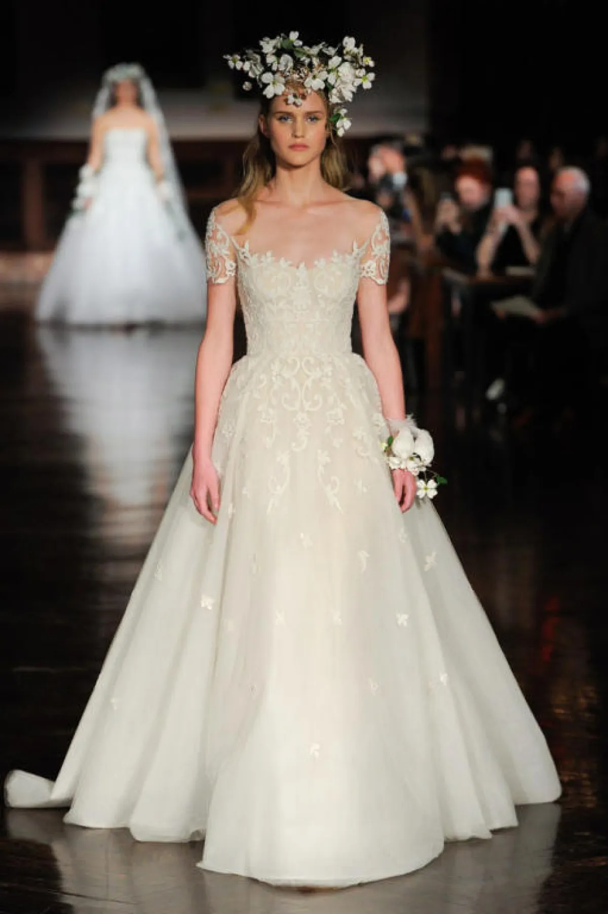 ومثل عادتها، بدت فساتين زفاف ريم عكرا ناعمة وجذّابة، وبرزت تصاميم الـBall Gown مع قصّات مختلفة في أعلى الفستان، مثل فساتين Off Shoulder، فساتين حمّالات، وفساتين بأكمام طويلة تناسب العروس المحجبة.