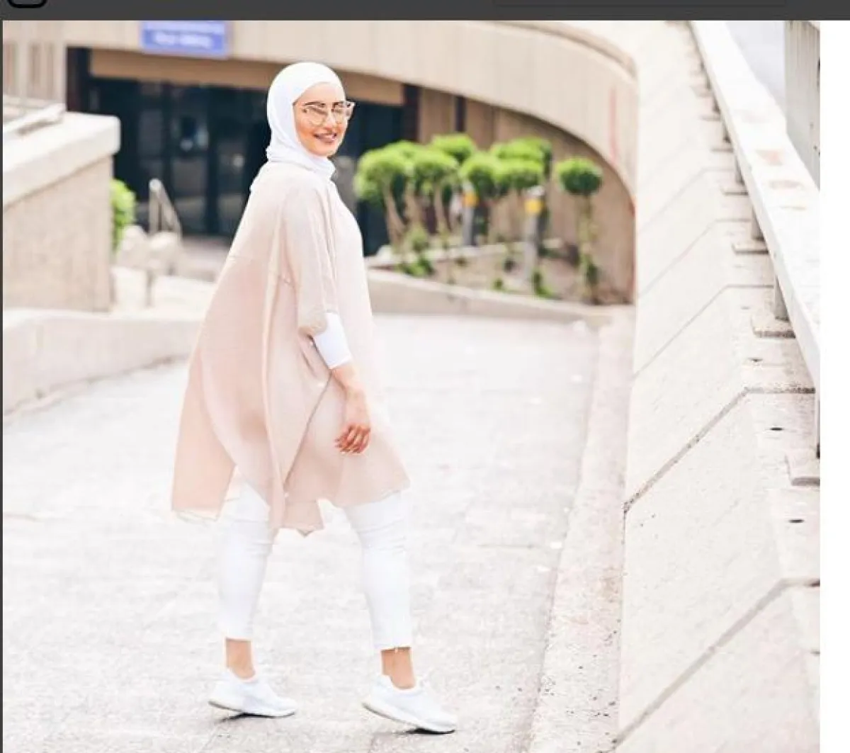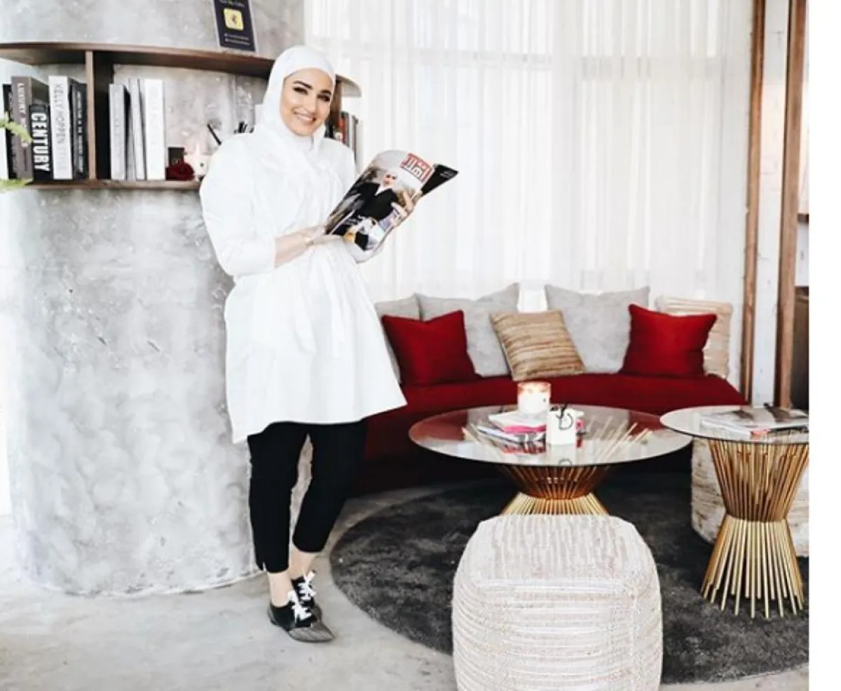 تميل دلال إلى كل ما هو رائج هذا العام، مثل اختيارها للقميص الجينز العصري المتربع على عرش الموضة، ونسقته مع جيب سوداء، وطرحة بيضاء، تلائم لون بشرتها.