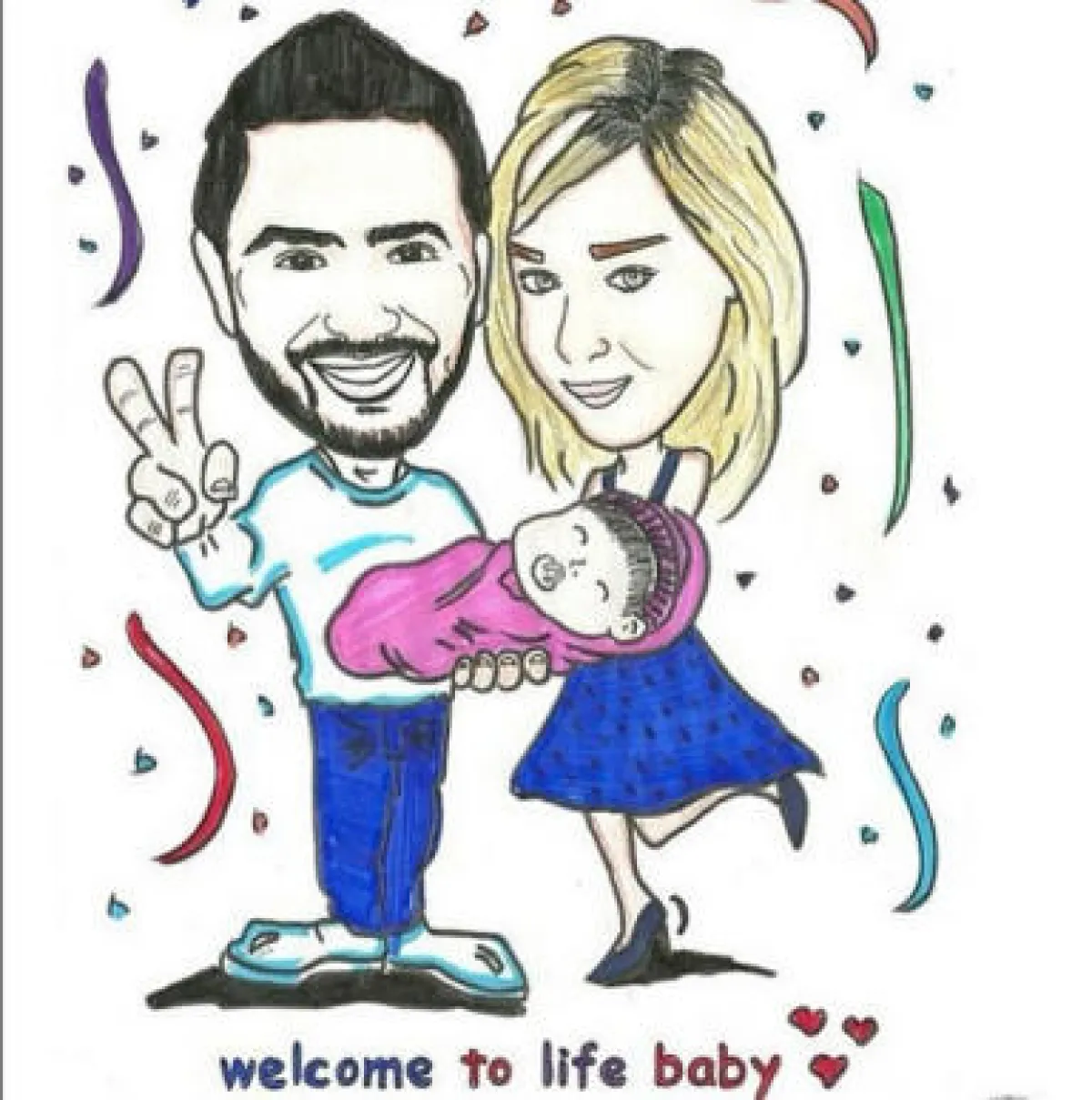 وعوضاً عن نشر صورة المولودة الجديدة، قام تامر بنشر صورة كاريكاتورية، تجمعه بزوجته بسمة بوسيل وابنته، ما يؤكد عدم رغبته بنشر صور طفلته، إيماناً منه أن حياته الشخصية خط أحمر لا يجب الاقتراب منه.