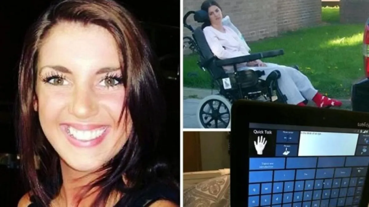 وأصيبت «ميا أوستن» 29 عاماً وتعيش في غرب إنجلترا بسكتة دماغية وهي في سن الـ 21 من عمرها، وبعد الإصابة شخصت من قبل الأطباء بمتلازمة نادرة تعرف باسم «متلازمة المنحبس»، حيث يكون المريض في حالة استيقاظ، لكنه غير قادر على التواصل مع الآخرين من حوله، ويصاب بشلل في كل الجسم تقريبا عدا عضلات العينين وتتغذى عبر أنبوب.