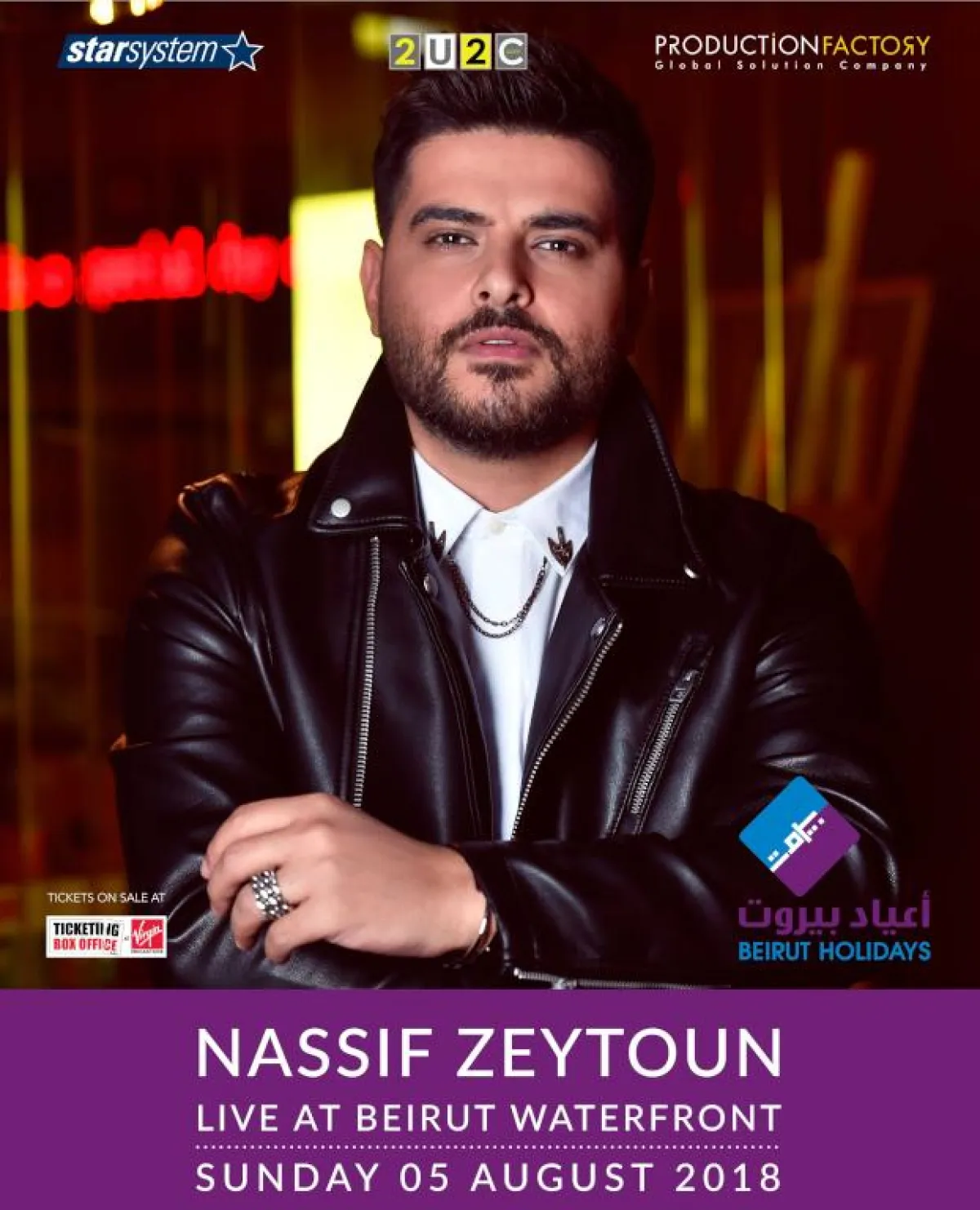 يوم 5 آب / أغسطس يطلّ على مسرح "أعياد بيروت" النجم الشاب ناصيف زيتون في أوّل مشاركة له في المهرجان بعد النجاح الكبير الذي حققه خلال الأعوام الأخيرة.
