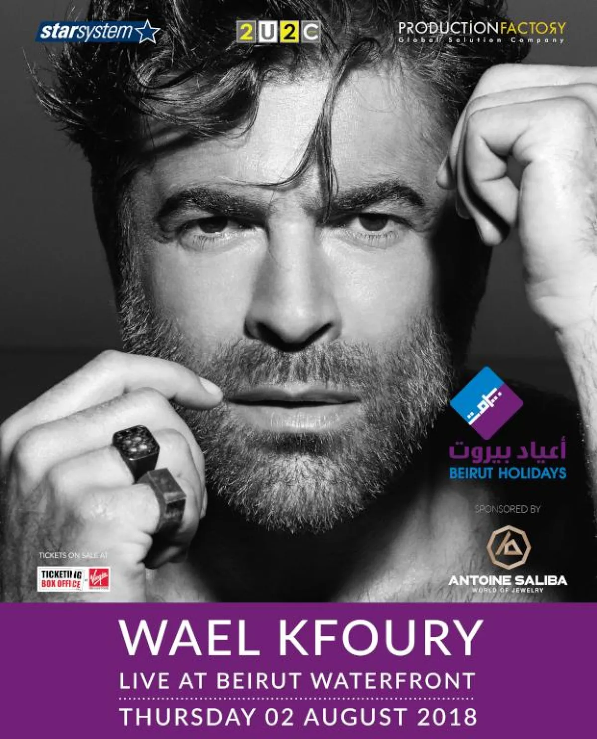 يُفتتح المهرجان يوم 2 آب / أغسطس مع حفل ضخم أضحى من الحفلات الثابتة والسنوية في "أعياد بيروت" مع الفنان وائل كفوري، مع الإشارة إلى أنّ وائل سيسجّل عبر هذا المهرجان مشاركته الفنية الوحيدة في بيروت خلال الموسم الصيفي.