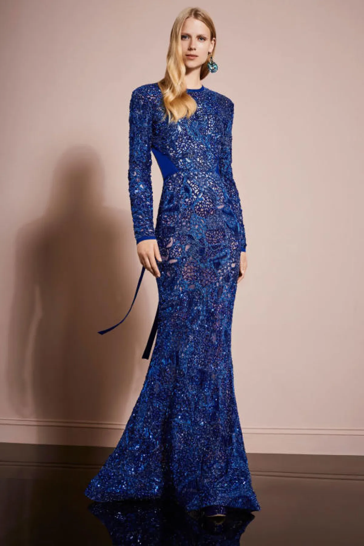 وباللون الأزرق الداكن، قدمت العديد من بيوت الأزياء فساتين سهرة فخمة مزينة بتطريزات برّاقة، مثل فساتين إيلي صعب Elie Saab، فساتين زهير مراد Zuhair Murad.