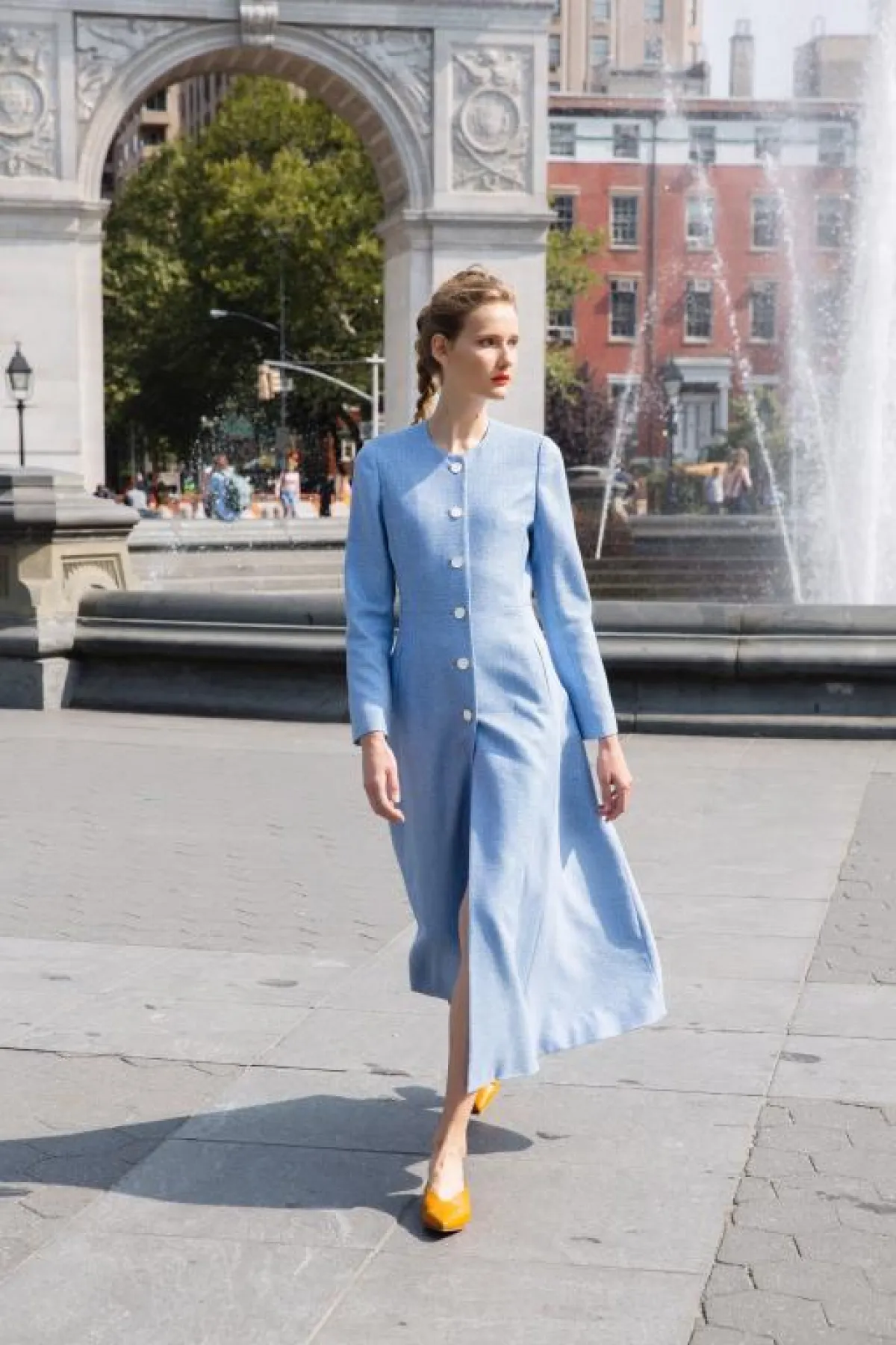ولإطلالتك النهارية، تحتاجين إلى فساتين أنيقة وبسيطة في التصميم، مثل الفساتين الزرقاء من ليلا روز Lela Rose، Roksanda، Ulla Johnson، هيرميس Hermes، وإيرديم Erdem.