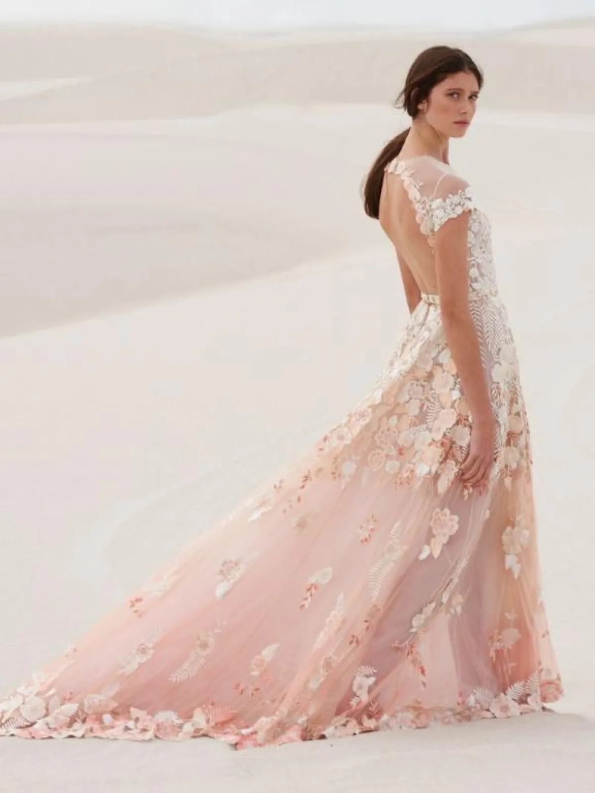 حيث قدم بعض المصممين فساتين زفاف وردية لموسم ربيع وصيف 2019، تميزت بتصاميمها الناعمة والراقية.