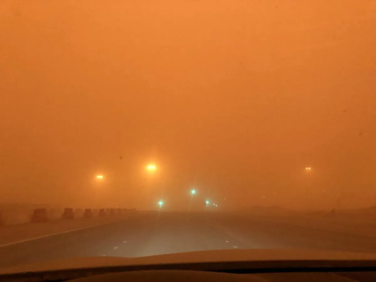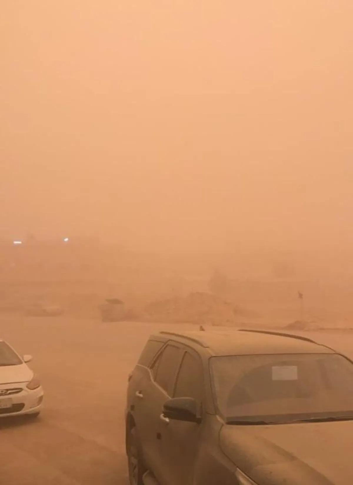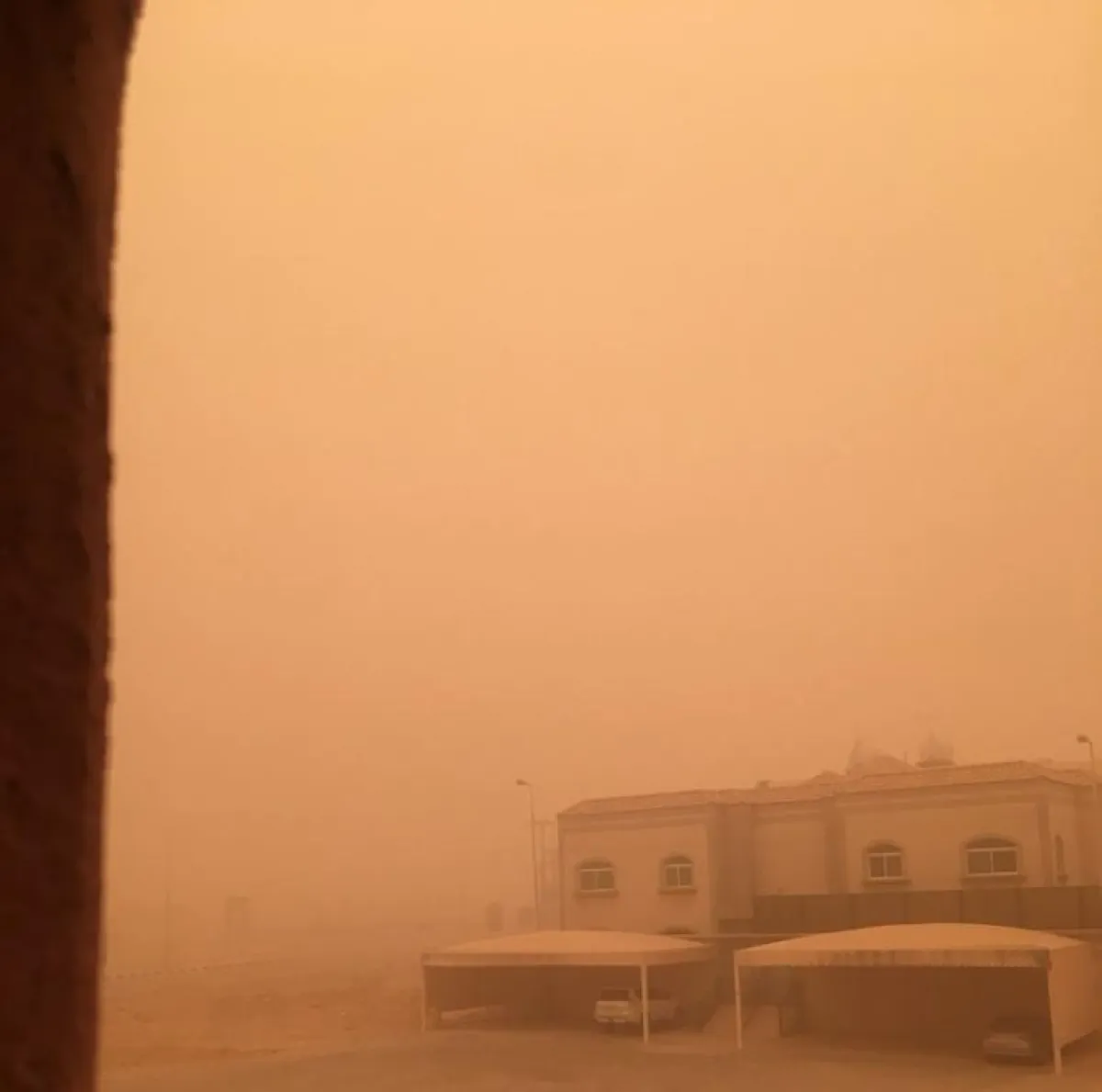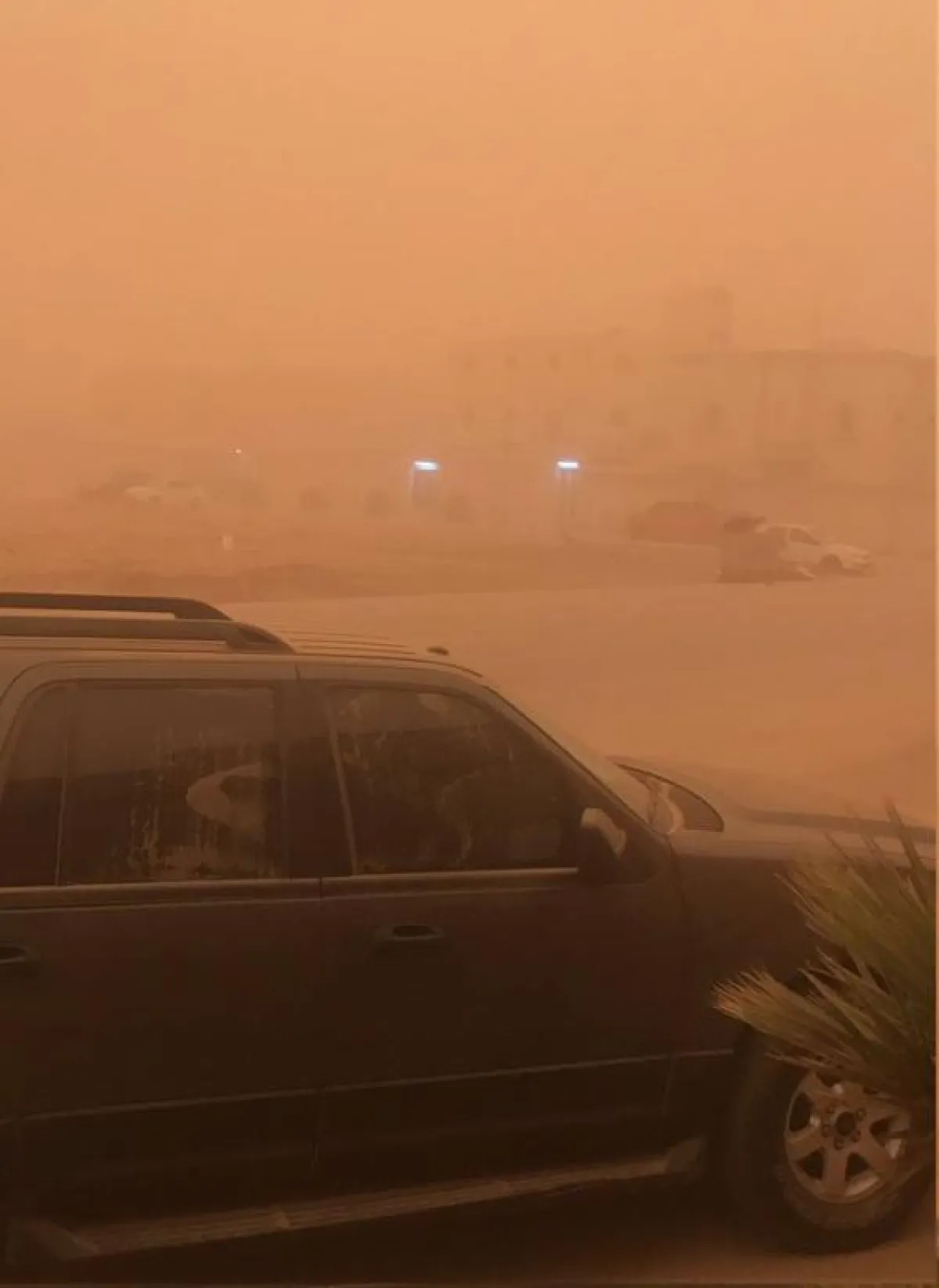 اجتاحت موجة غبار شديدة فجر اليوم الرياض، ما تسبَّب في تدني مستوى الرؤية الأفقية بشكل كبير في جميع أنحاء المدينة، كما تحوَّلت سماء الرياض إلى اللون الأحمر من شدة الرياح الترابية.