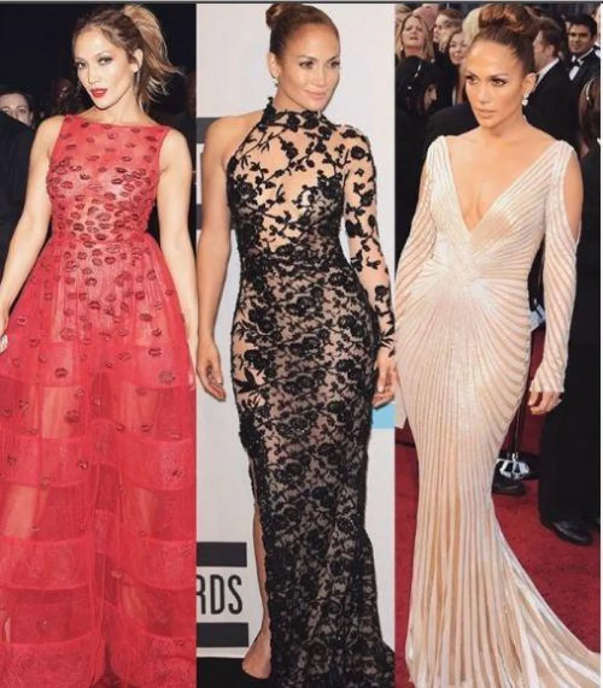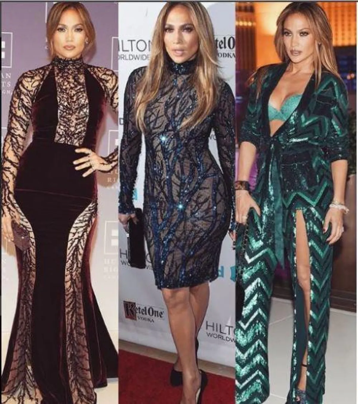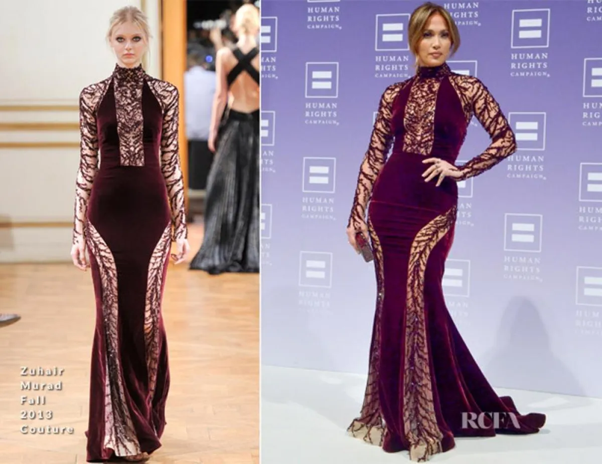 تعكس تصاميم زهير مراد مدى رغبة لوبيز في ارتداء التصاميم الميتاليك ذات الألوان اللامعة، مثل الأخضر بلون الزرع، الذي يناسب شعرها الذهبي وعيونها البنية كثيرًا.