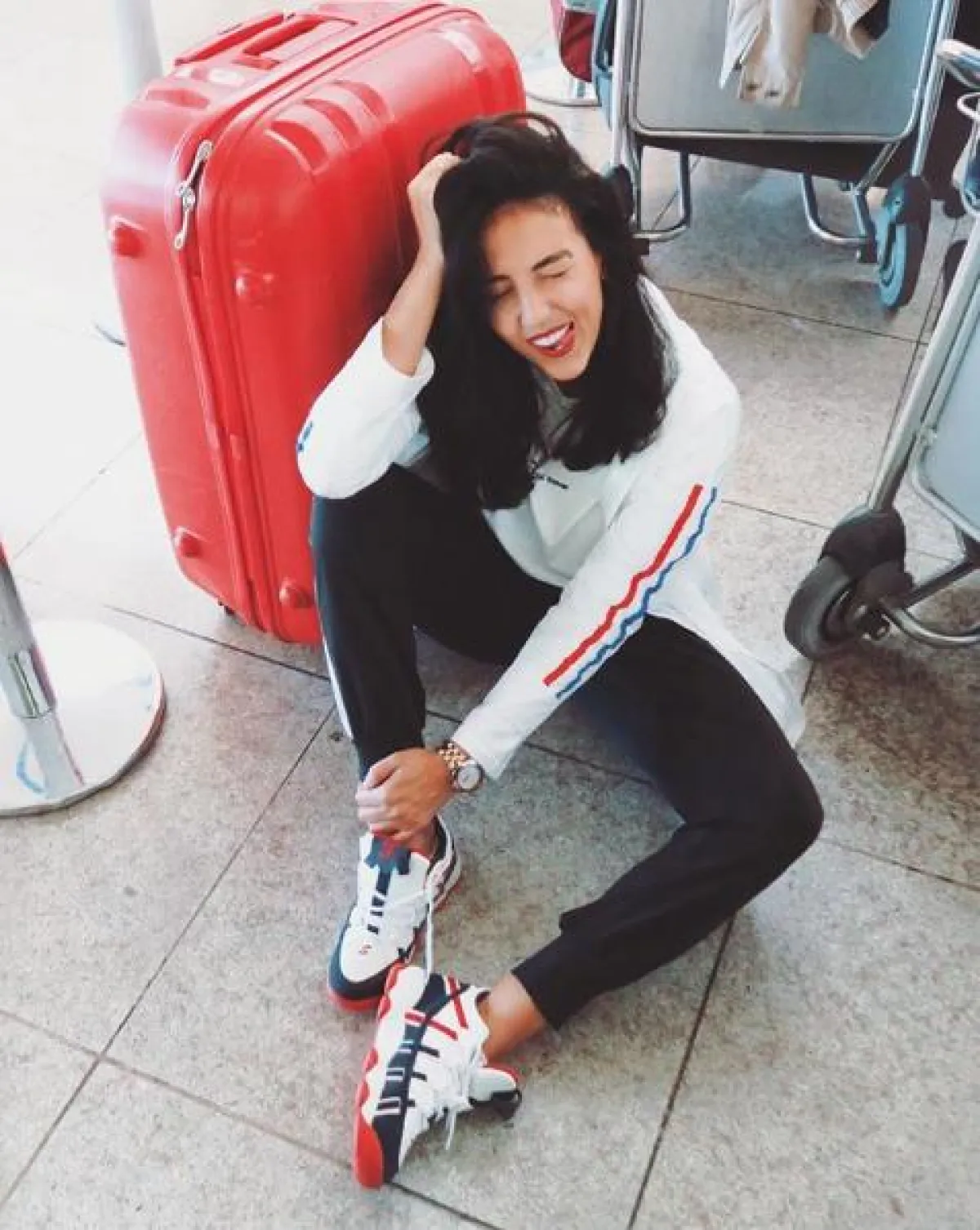 ليس أفضل من هذا الحذاء الرياضي المميز ليكون رفيقكِ الدائم في السفر، ولإطلالة مختلفة اختاريه مُخلطاً بألوان أخرى، ولا تتخلي عن أناقتكِ أثناء السفر مثلما تفعل مدونة الموضة هادية غالب.