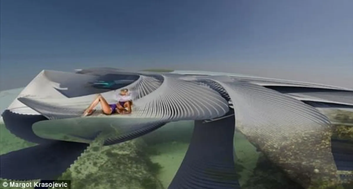 ونشرت ال “ديلي ميل” صوراً مدهشة للفندق، الذي صممه المهندس المعماري “مارغوت كراوسفيتش”، حيث جعل نصفه مغموراً تحت المياه، مع غرف نوم توفر مناظر خلابة.