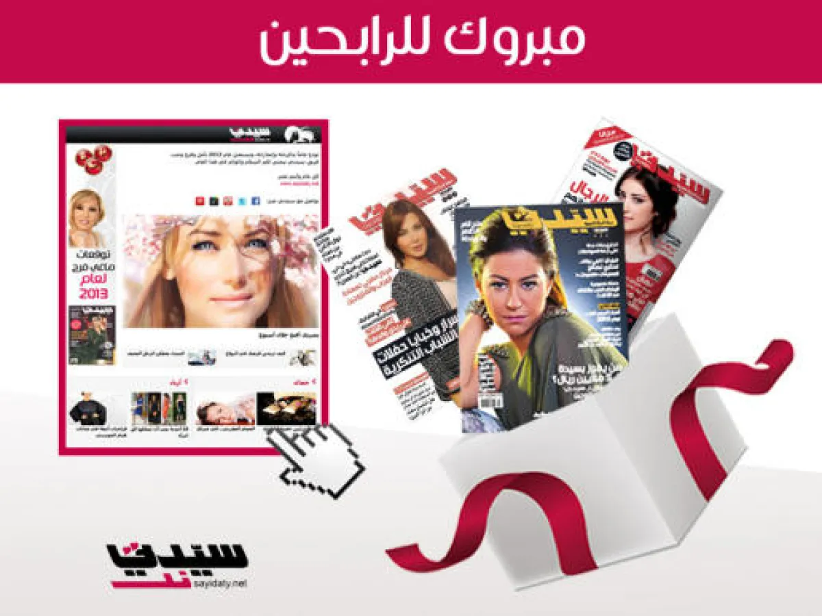 مبروك للرابحين بمسابقة سيدتي الإلكترونية لشهر أبريل / نيسان 2013 (5 رابحين بإشتراك سنوي بمجلة سيدتي ، و 100 رابح بحسم 25 % على الإشتراك لمدة سنة) :