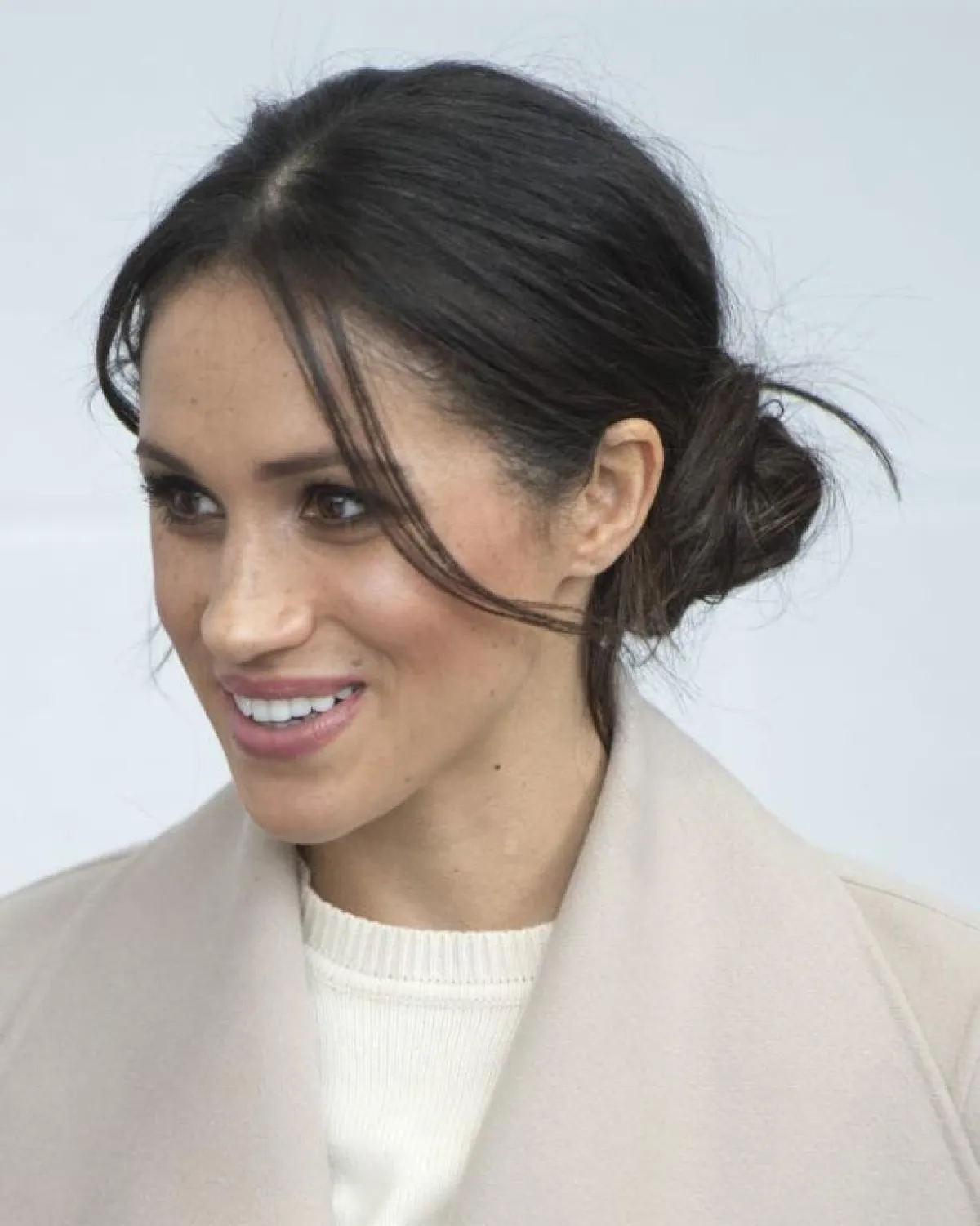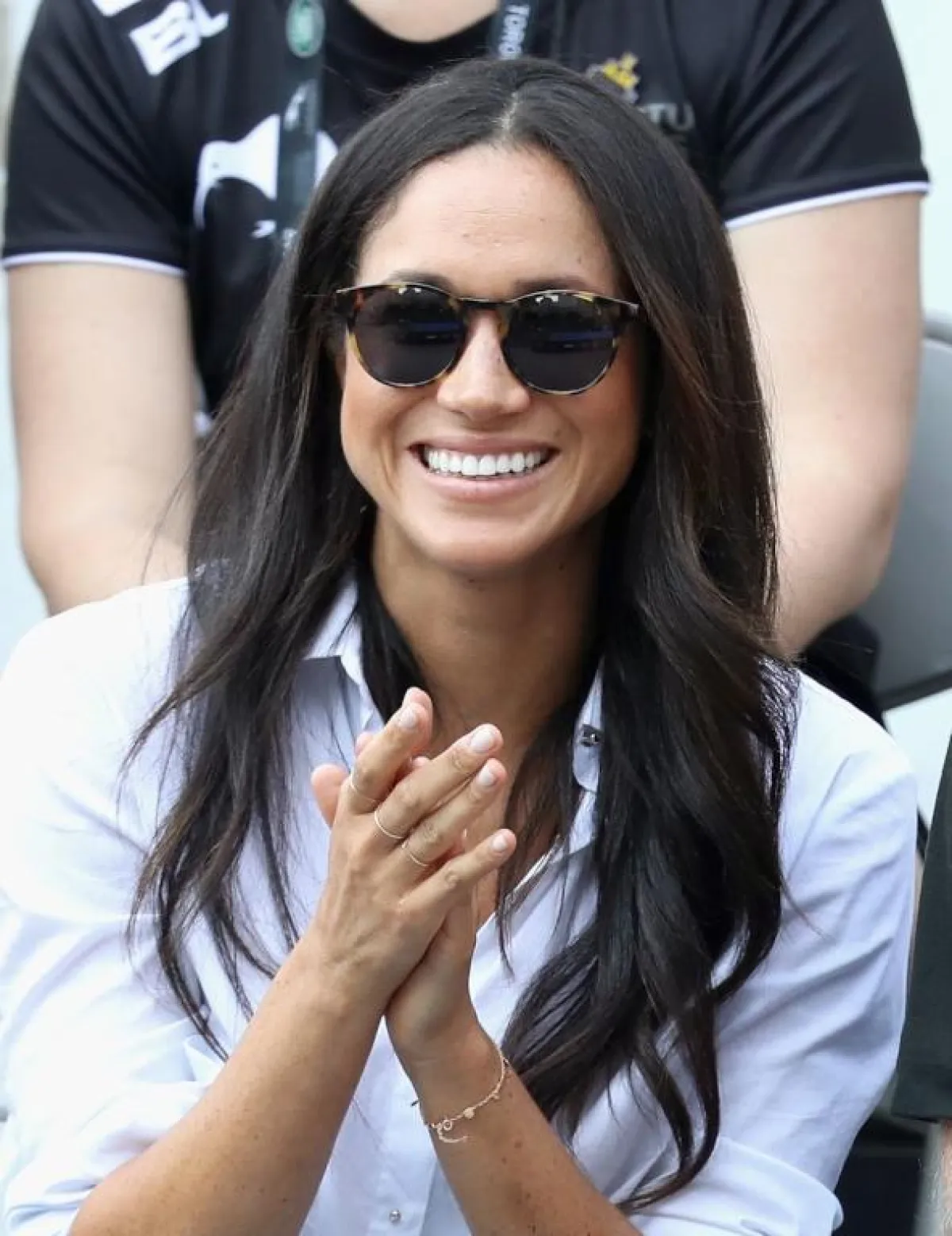 في أول ظهور لها برفقة الأمير هاري بعام 2017 ظهرت ميغان بشعر طبيعي مهدول على كلا الجانبين، بإطلالة مريحة.