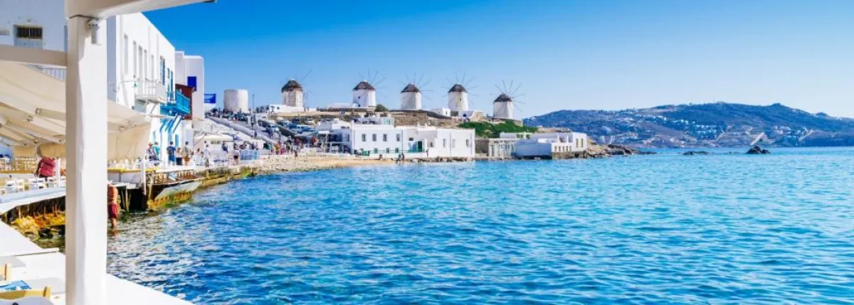 ميكونوس هي جزيرة باليونان، تتميز بالمناظر الخلابة، وتُعتبر إحدى أجمل جزر اليونان، سوف تستمتعين فيها بالمناظر الخلابة والبحر يحيط بكِ من كل النواحي، كما أنها تشتهر بشعبها الطيب الودود، فلن تشعري كثيرًا بالغربة.