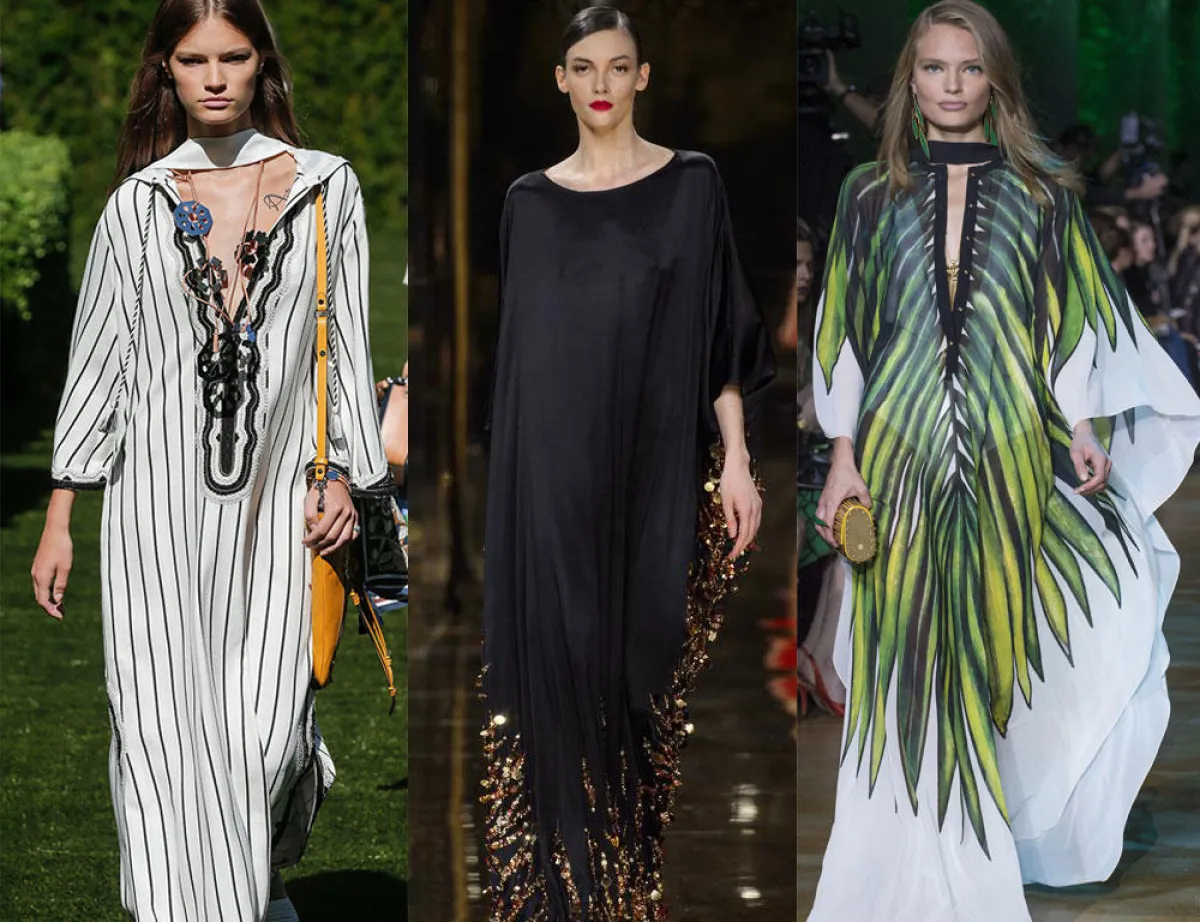 من أبرز الموديلات التي ظهرت هذا الموسم، هي القفاطين بالطبعات والنقشات الحيوية، والمستوحاة من عالم الطبيعة، مثل قفطان إيلي صعب Elie Saab، إميليو بوتشي Emilio Pucci، وروبيرتو كافالي Roberto Cavalli.
